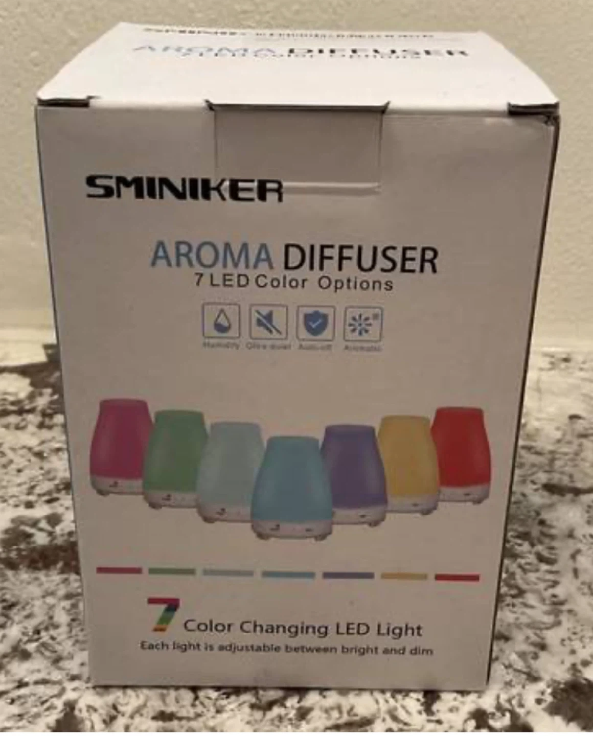 Selling a SMINIKER aroma diffuser with 7 LED color options! It's brand new in the box. Each light is adjustable between bright and dim