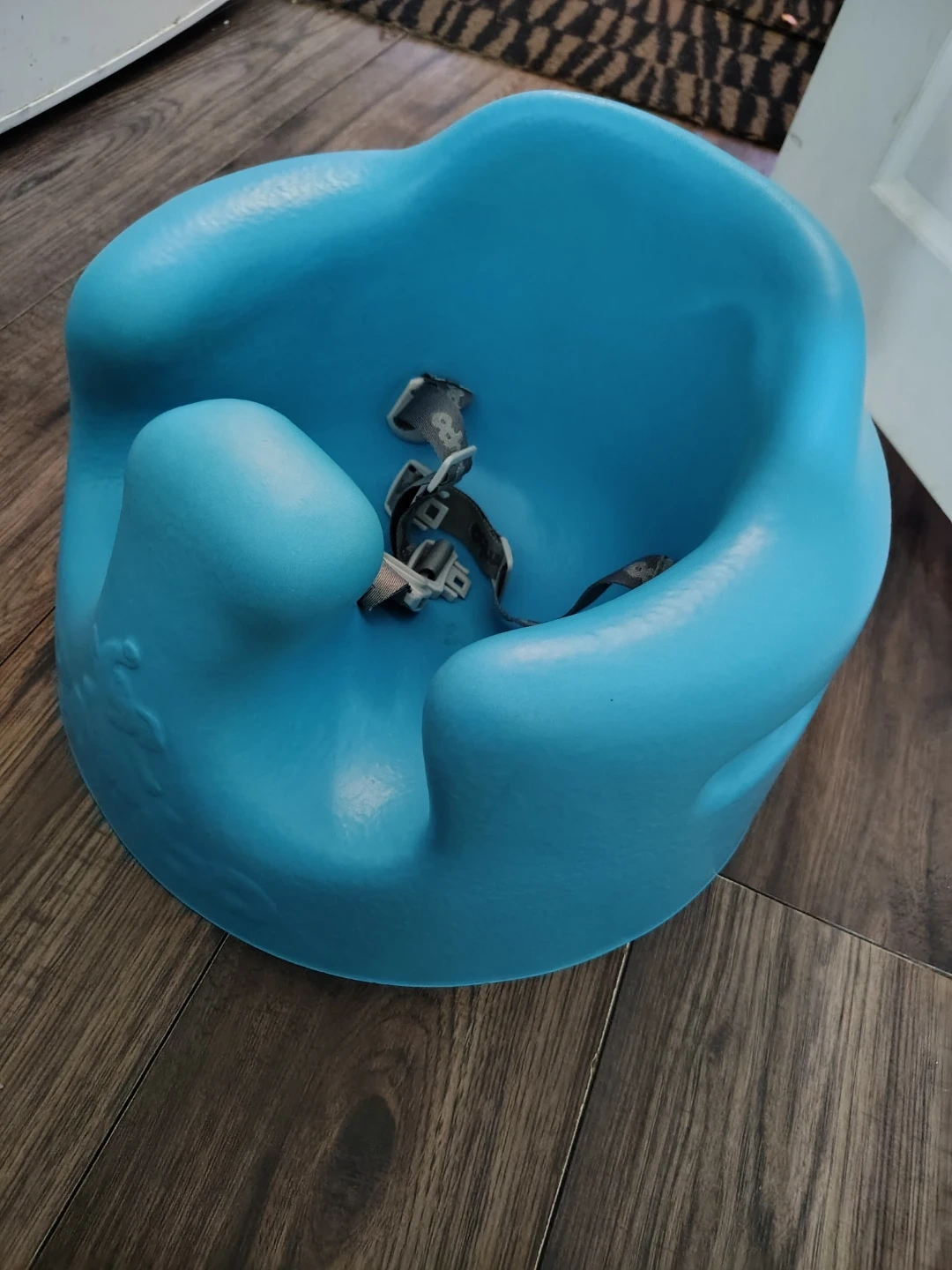 Selling a Bumbo floor seat in blue! It's in good condition and perfect for helping your little one sit up and explore the world around them. It's lightweight and easy to move around the house so your baby can always be nearby