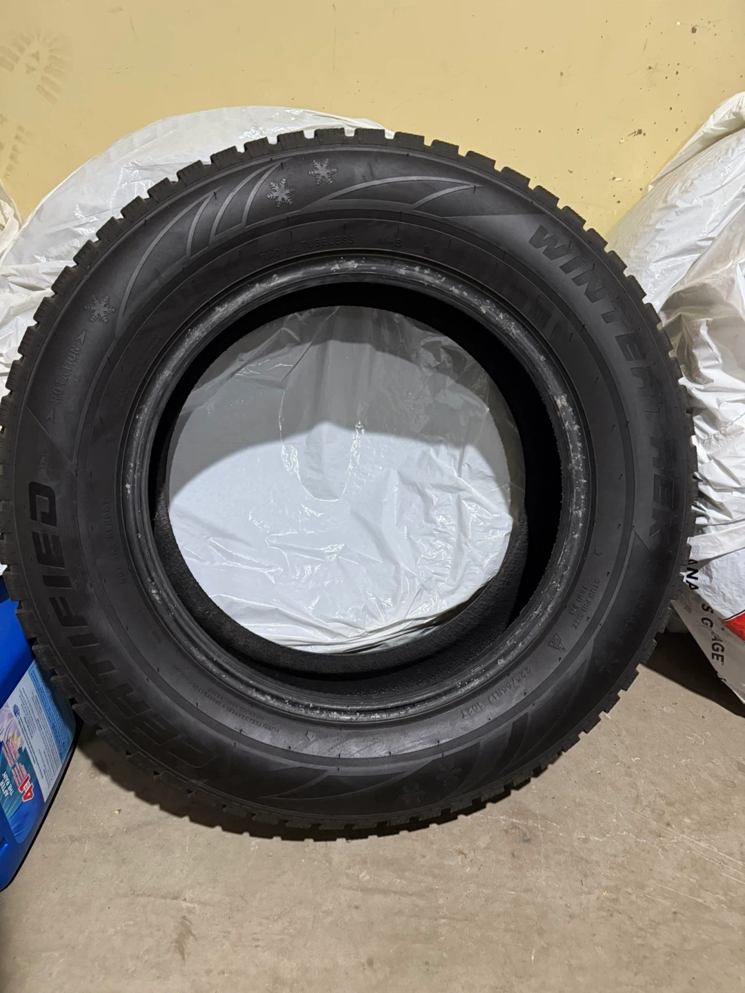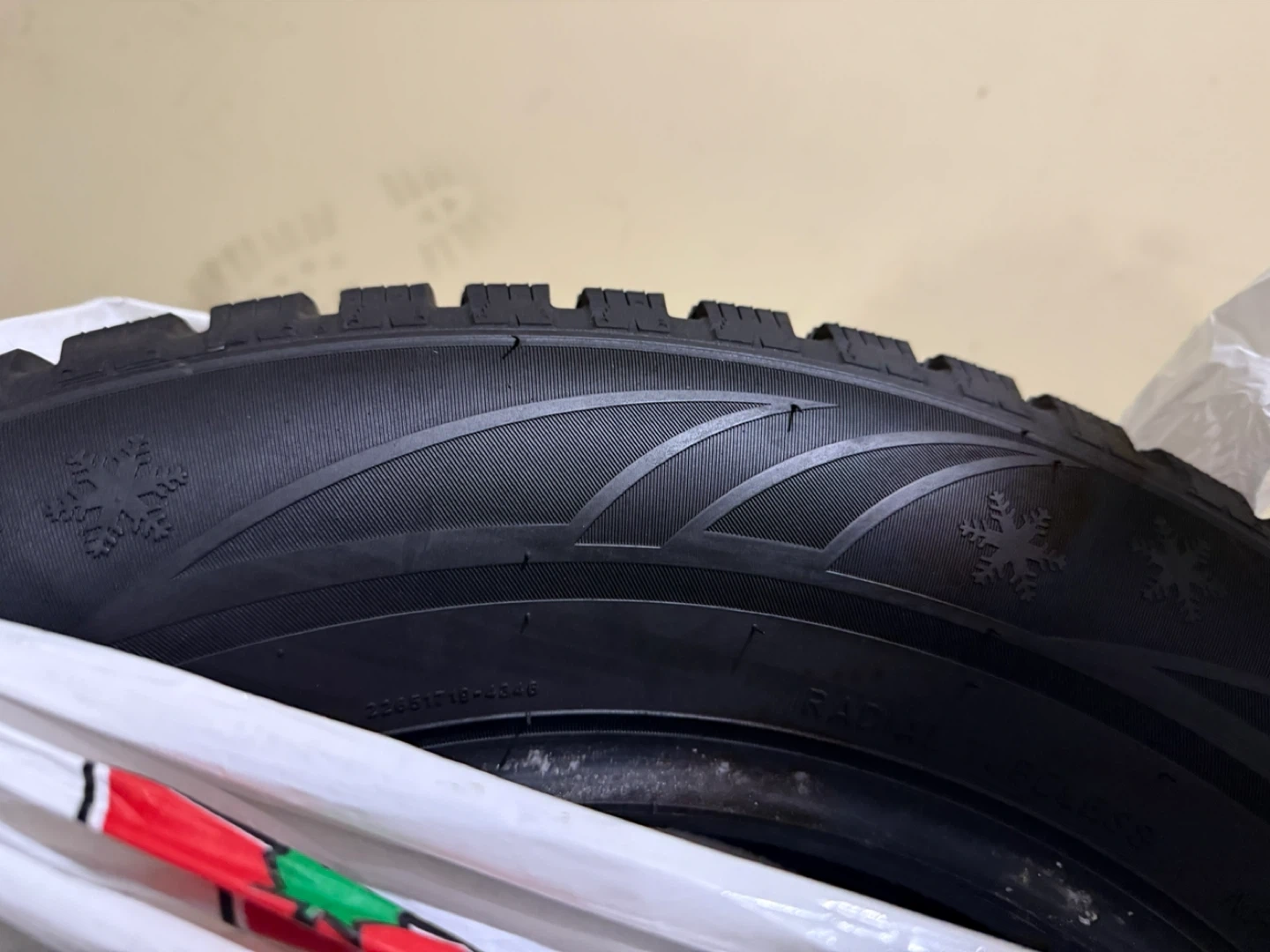 Selling a set of four winter tires. The size is 225/65R17. They have a radial tubeless design and feature a snowflake pattern for enhanced winter performance. Ready to keep you safe on the road this winter!