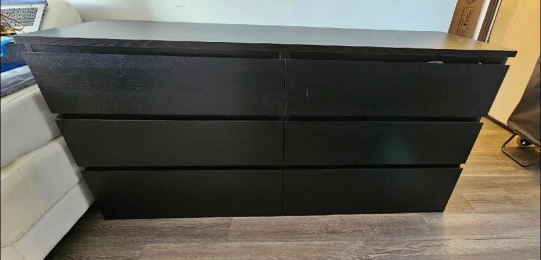 Selling an IKEA Malm 6-drawer dresser in black/brown. It's in great condition and offers lots of storage space. Perfect for organizing your clothes and keeping your room tidy! This dresser is a stylish and functional addition to any bedroom. no damage.