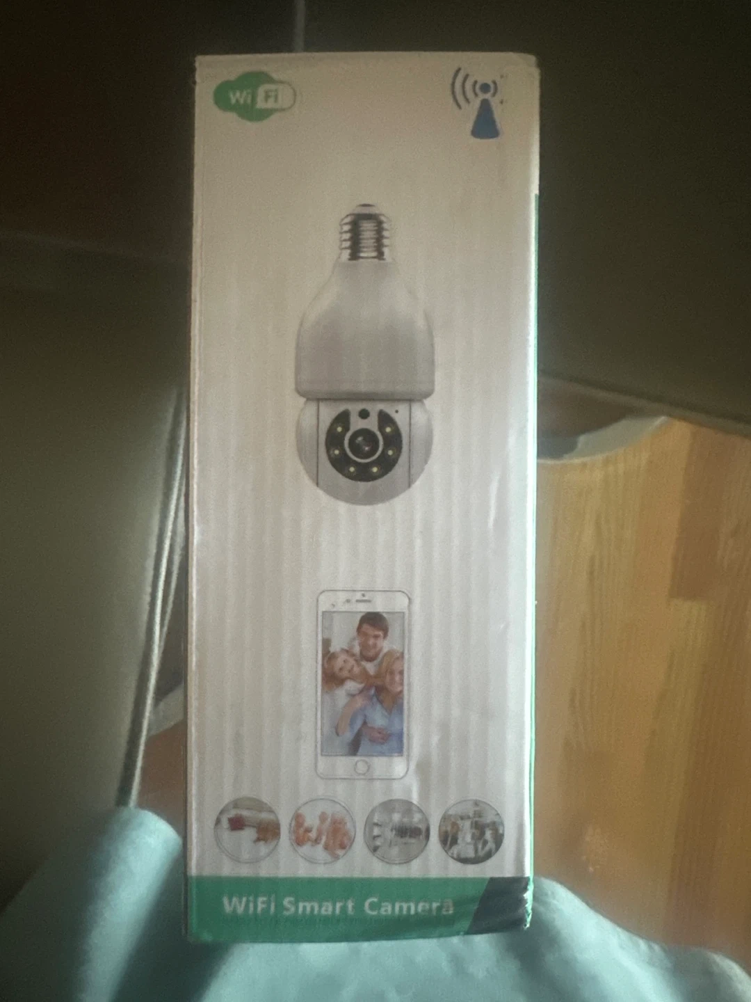 Selling a WiFi Smart Camera that's easy to set up for real-time remote viewing. It's a WiFi Bulb Camera with an E27 screw lamp base interface. The PTZ horizontal angle is 355 degrees, and the PTZ vertical angle is 90 degrees