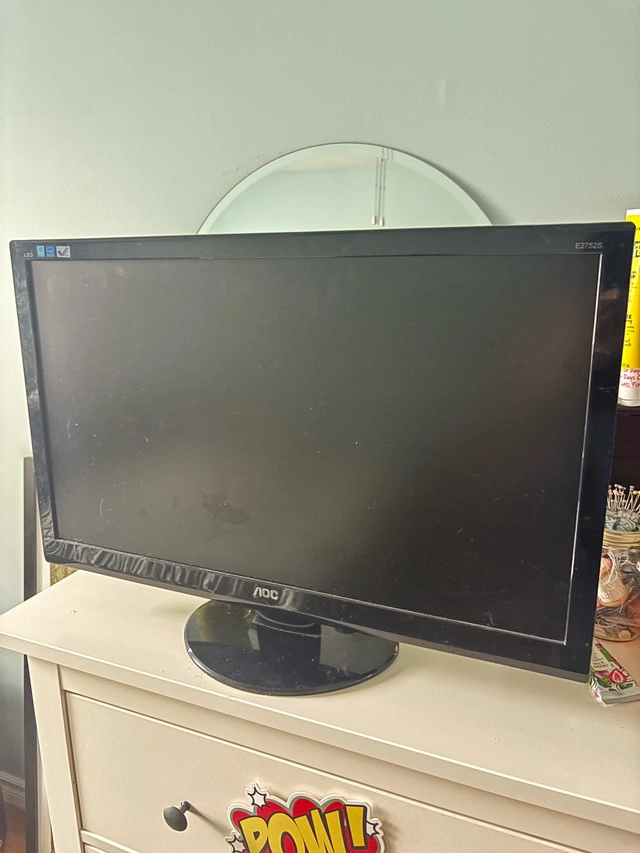 Selling my AOC 27-inch LED monitor (model E2752S) — works perfectly and delivers a sharp 1080p display. Ideal for gaming, office work, or a dual-monitor setup. Inputs: HDMI, DVI, VGA, and headphone jack. Dimensions: 25.5” W × 16” H × 2” D