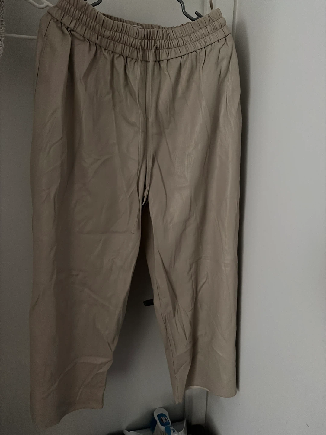 171Selling a pair of Weekend MaxMara faux leather pants in size 14! They have an elastic waistband and a relaxed fit. Perfect for a casual yet stylish look