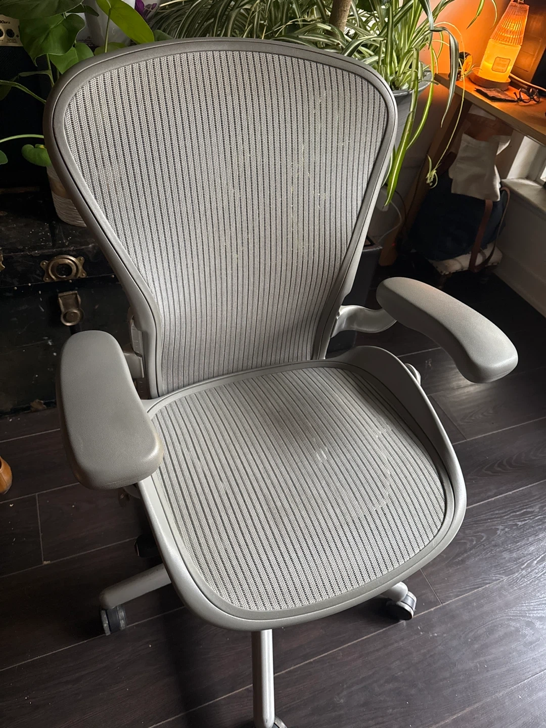 Selling a Herman Miller Aeron office chair in great condition! It's super comfortable and supportive for long workdays. This chair is known for its ergonomic design and build quality, perfect for your home office!