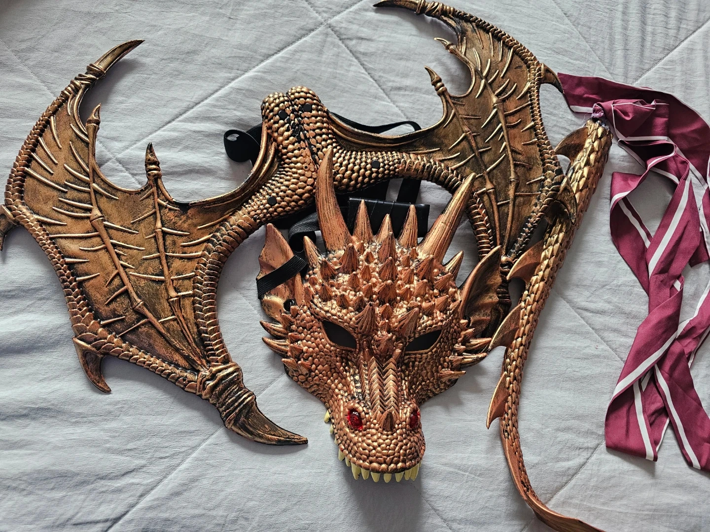 Free Role Party dragon mask that comes with wings. It's a great costume accessory for parties or events.