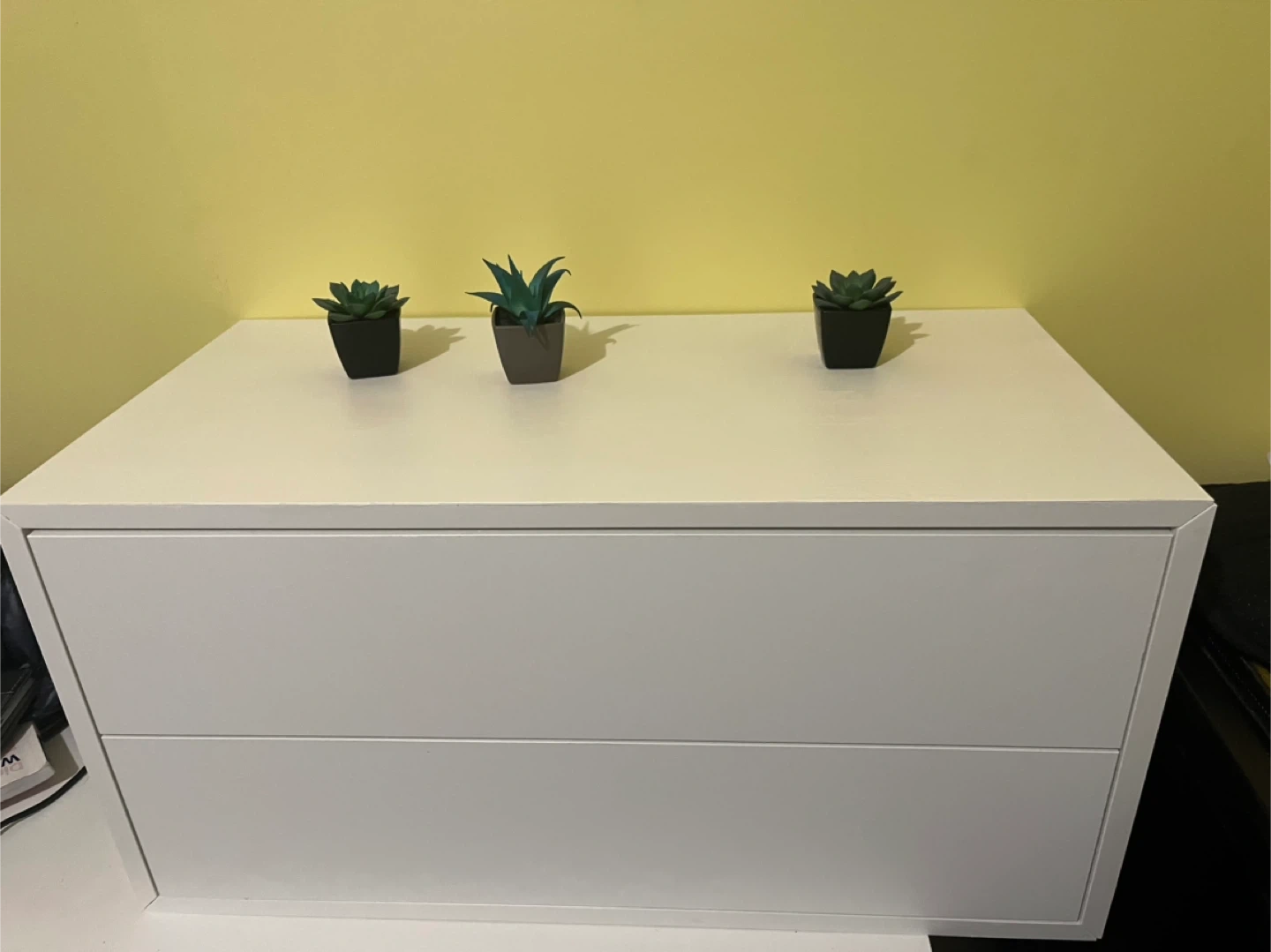 Looking to sell this IKEA EKET cabinet with two drawers! It's in great shape and would be perfect for adding some extra storage to any room. The dimensions are 70x35x35 cm.the top surface is little bit rough because of sanding but overall the drawers are very smooth and in excellent condition.