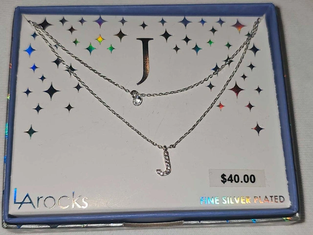 This is a brand new LA Rocks silver-plated necklace featuring the initial 'J', complete with its original box and a $40 price tag. Specifications: