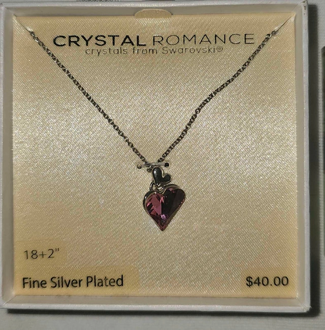 These are new Crystal Romance necklaces with crystals from Swarovski. They are fine, silver plated and come in the original packaging.