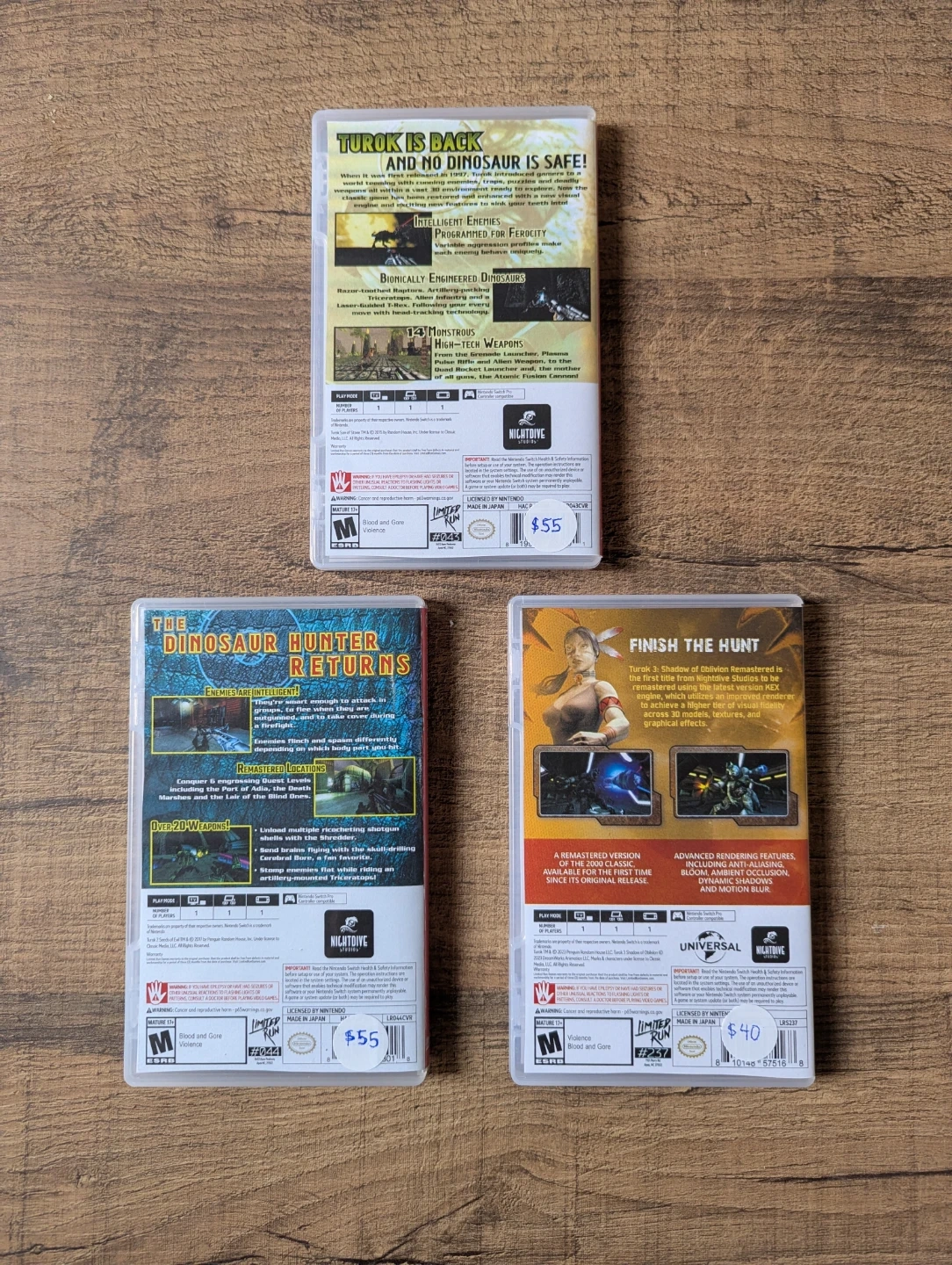Selling Nintendo switch Turok 1-3. All used but in great working condition.