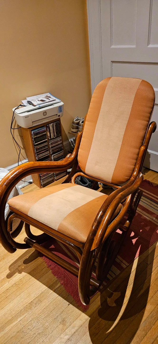 Selling a handcrafted wooden rocking chair with a unique design! It has a cozy, comfortable feel and would be a great addition to any home. In good condition and ready to be enjoyed.