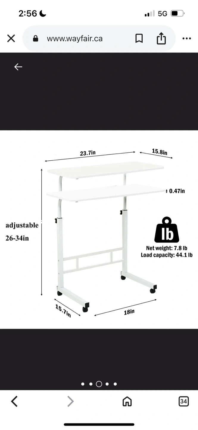 137Wayfare Price $69.99 This rolling laptop desk is perfect for working from home or in bed! It features an adjustable height and lockable casters. The dimensions are 23.7in x 15.8in, and the height is adjustable from 26-34 inches. It also has a stable framework and protective edge.