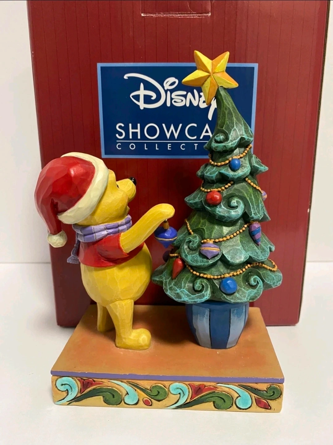 I'm selling a Disney Showcase Collection figurine titled "Trim the Tree with Me" featuring Winnie the Pooh and a Christmas tree! It comes in its original box, ready to add a touch of Disney magic to your home