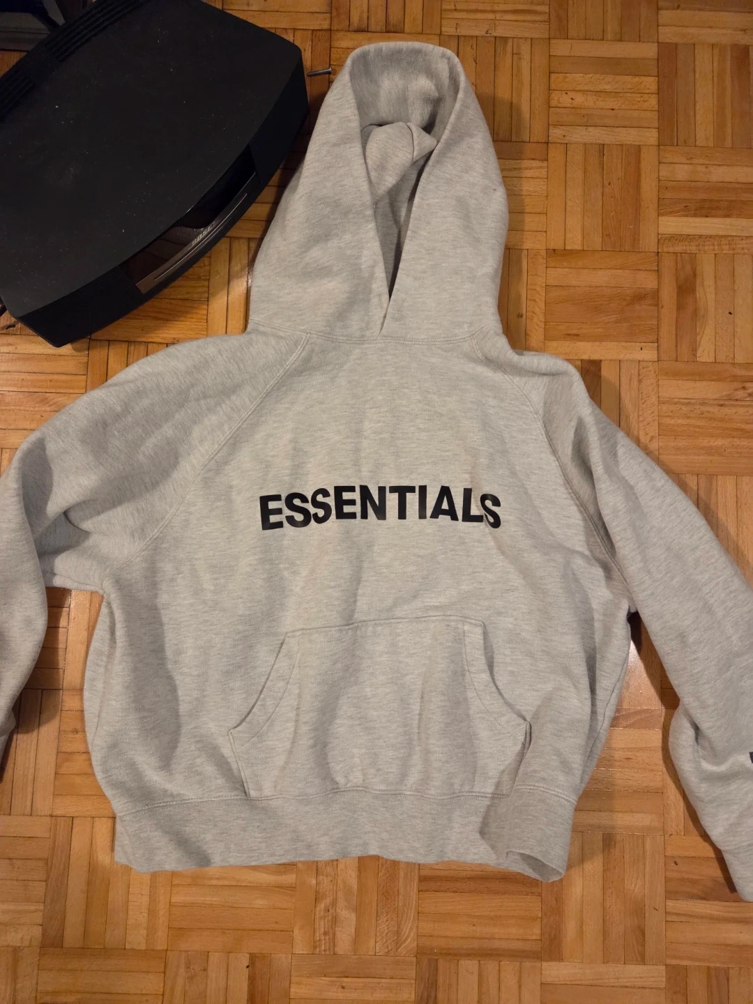 1000+Selling a gently used Essentials hoodie in size small. It's a light grey colour and made of 80% cotton and 20% polyester. This comfy hoodie is perfect for everyday wear! * Cash Only * * No E-transfers * * Pickup Only * * Serious Offers Only * * No Trades *