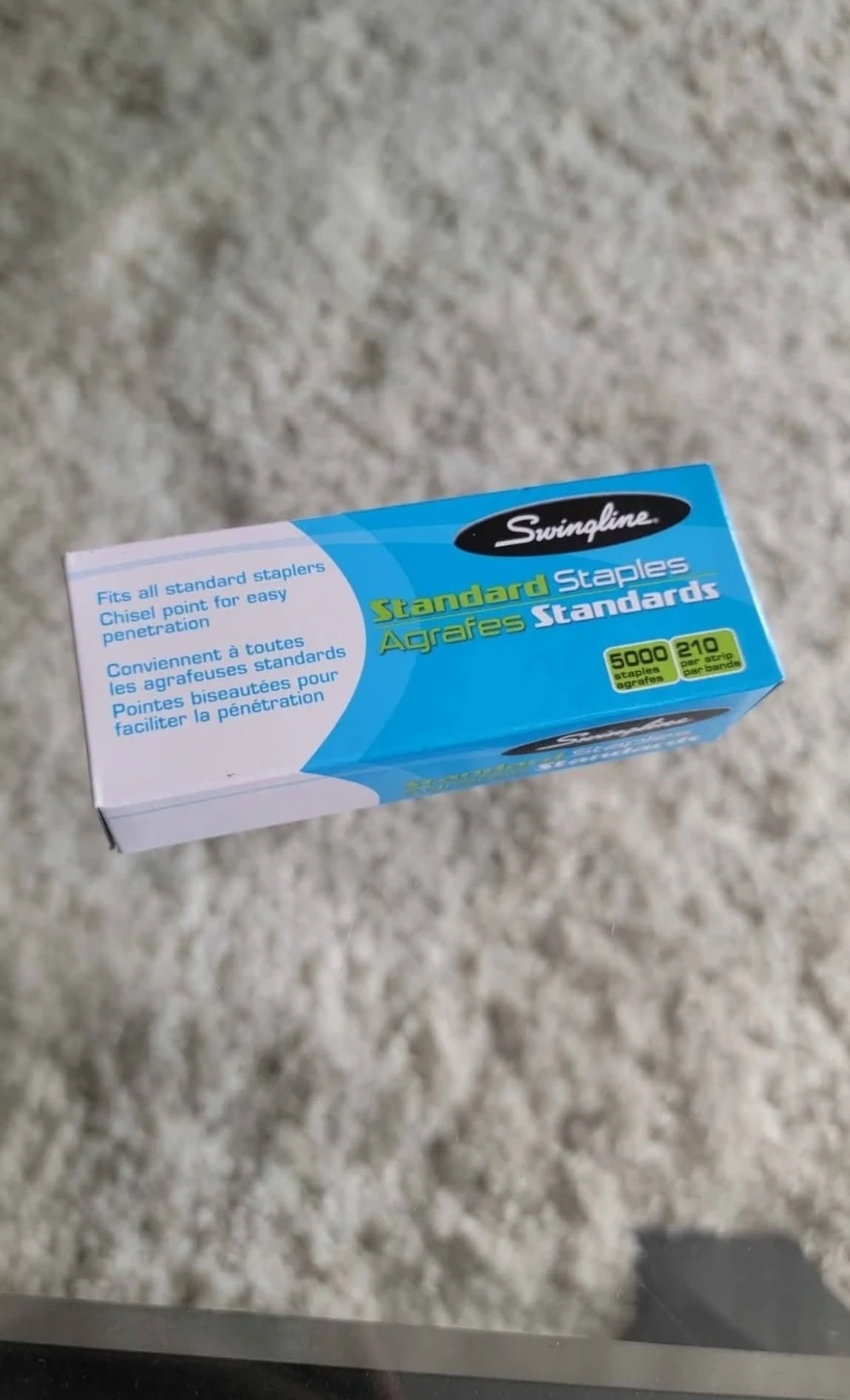 Selling a box of Swingline standard staples. This box contains 5000 staples, perfect for any standard stapler! They have a chisel point for easy penetration, making your stapling tasks a breeze