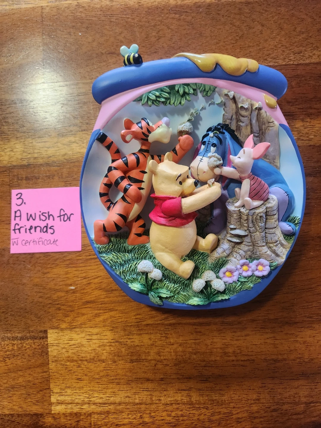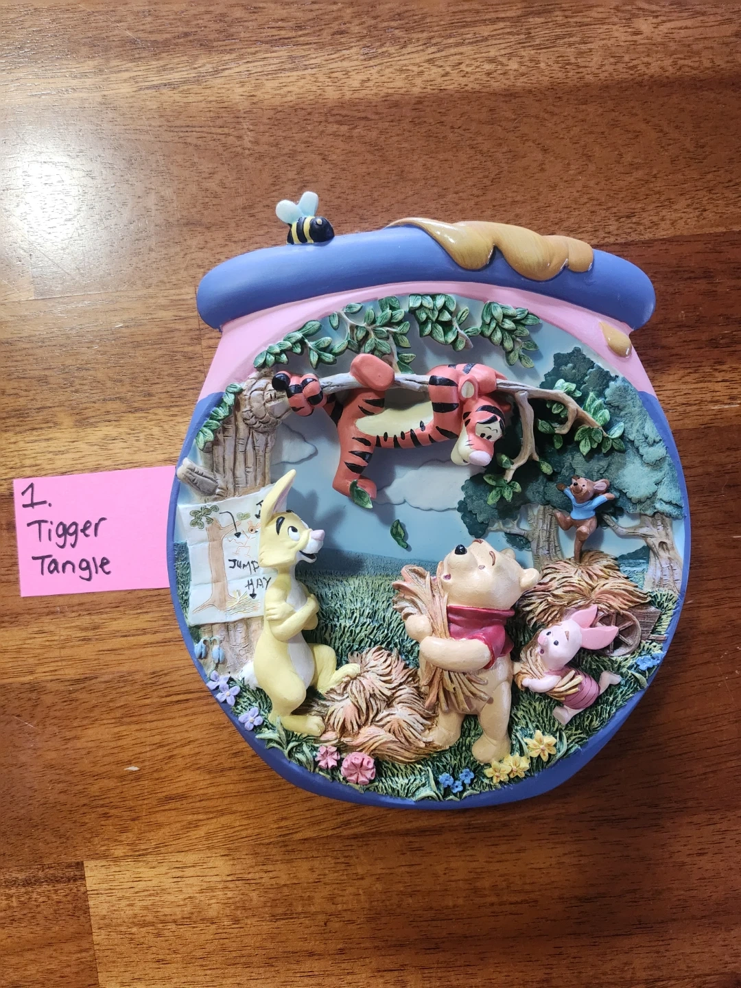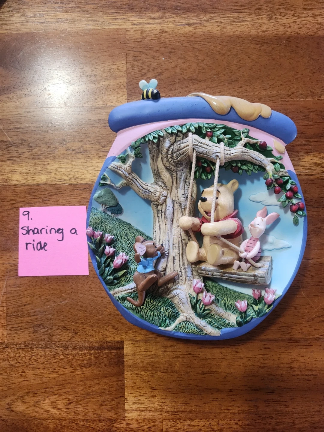 Cute Winnie the Pooh and friends porcelain wall decor featuring different scenes. Perfect for a nursery or a Disney collector!