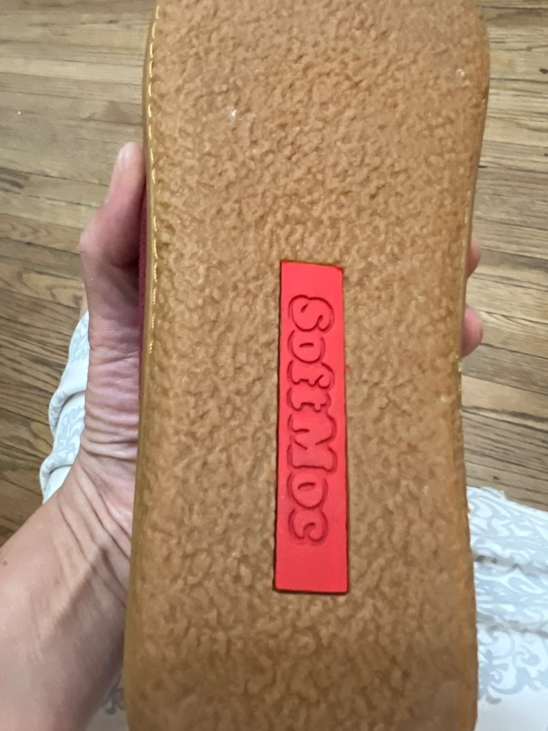 Keep your feet cozy with these SoftMoc moccasin. The burgundy colour is lovely, and they're perfect for wearing around the house. Its new.