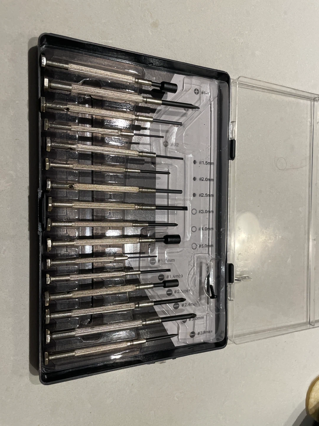 Selling a precision screwdriver set! It includes a variety of sizes to handle small screws, perfect for electronics, hobbies, and more. The set comes in a compact case for easy storage and organization. A must-have for any toolkit!