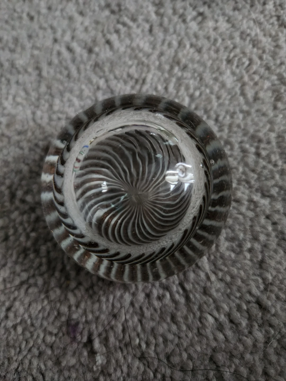 Selling a decorative glass paperweight featuring a swirl design. It's in 🥕great condition and would look lovely on a desk or shelf!