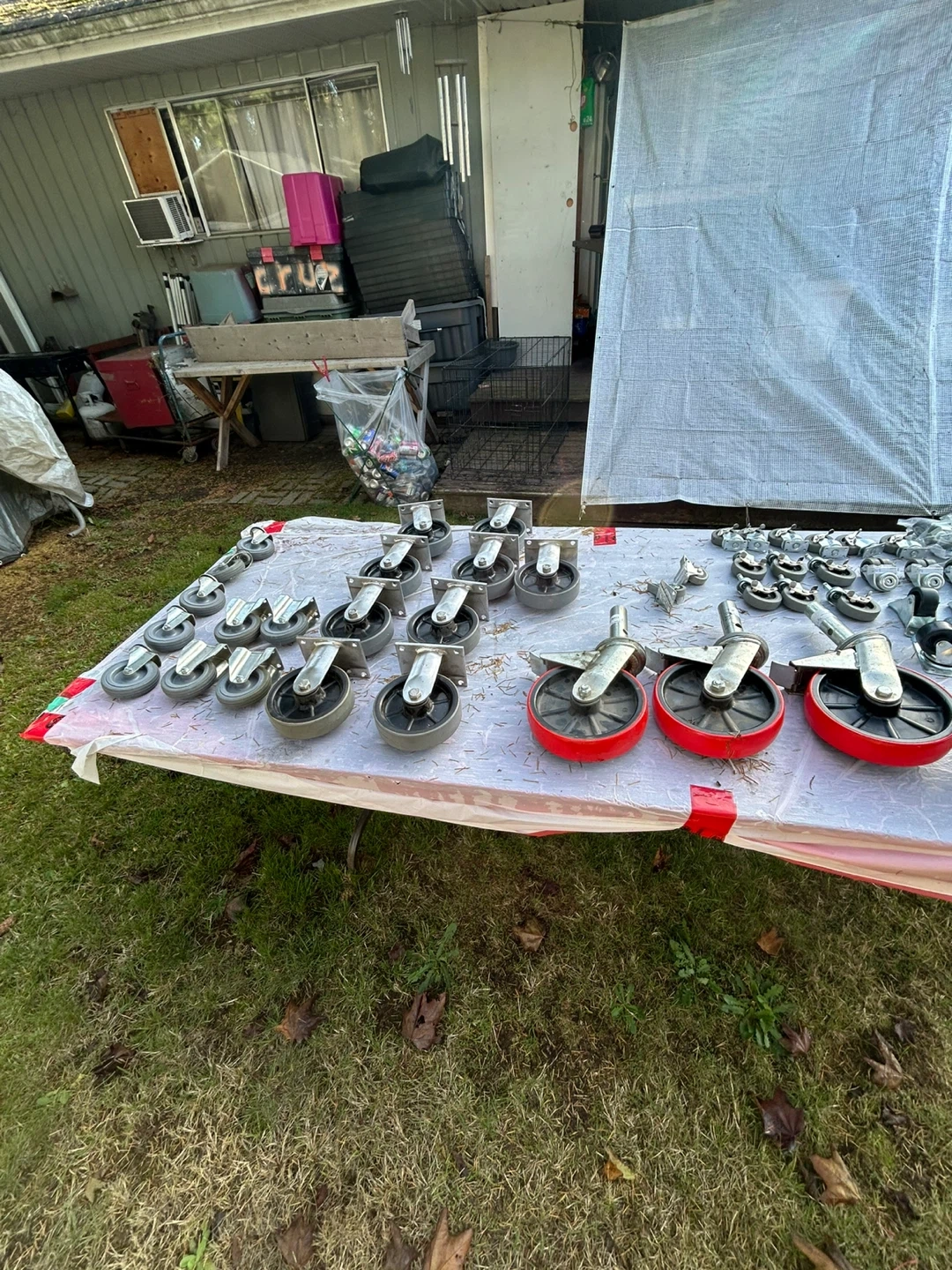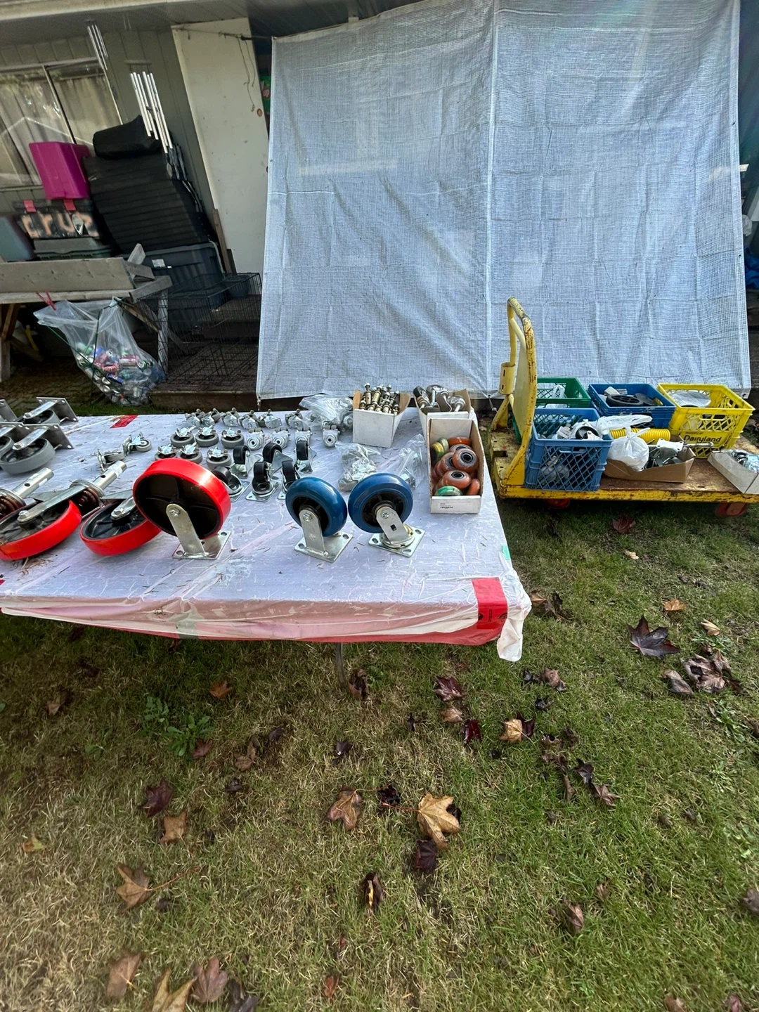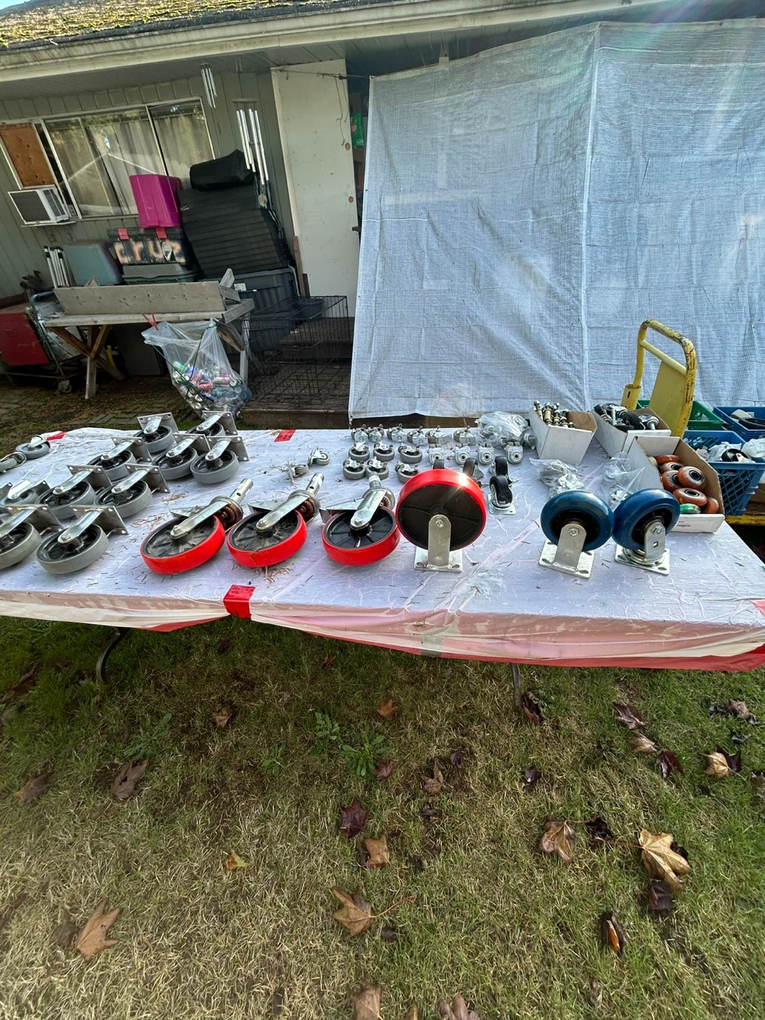I have a variety of casters for sale. They come in different sizes and colours. price range from $2.oo to $50.oo or sell all for $650.oo phone 604-790-4459