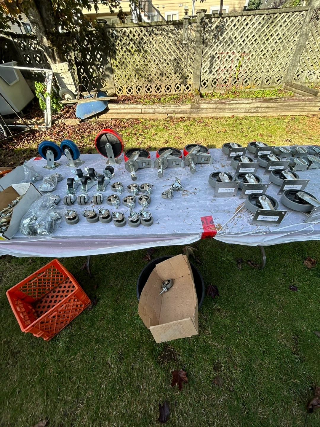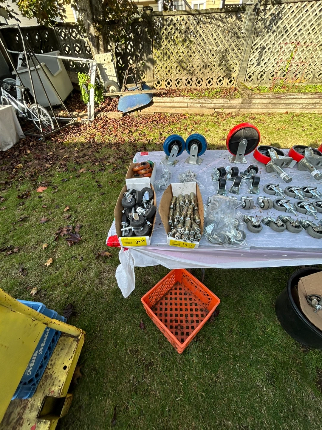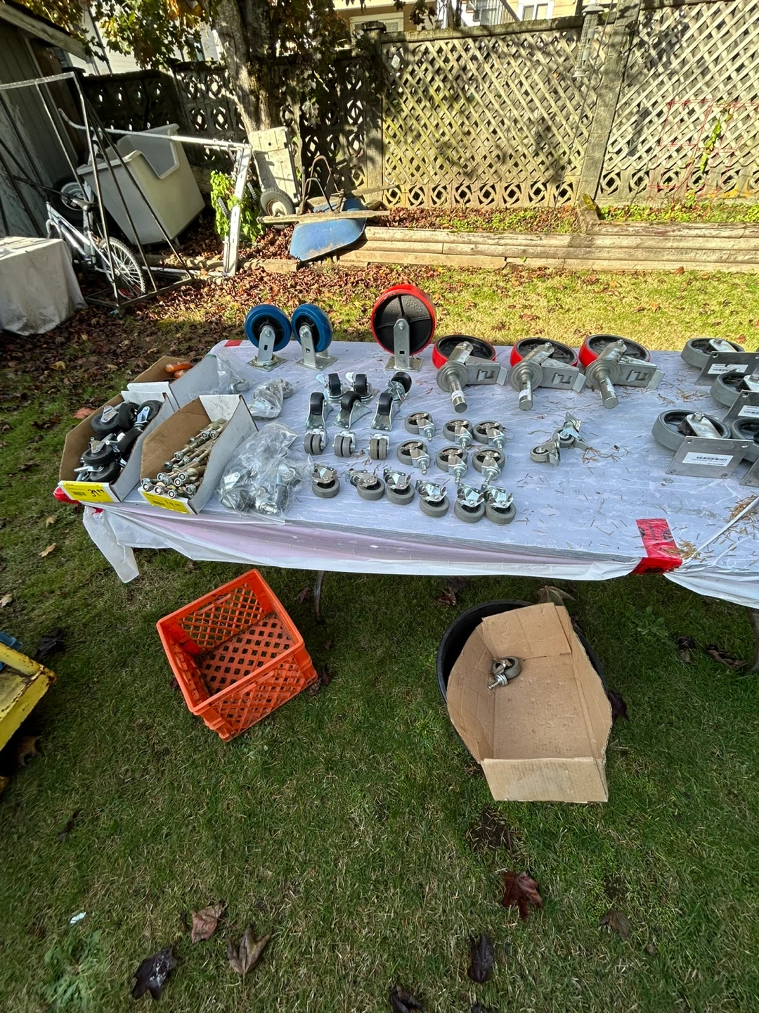 I have a variety of casters for sale. They come in different sizes and colours. price range from $2.oo to $50.oo or sell all for $650.oo phone 604-790-4459
