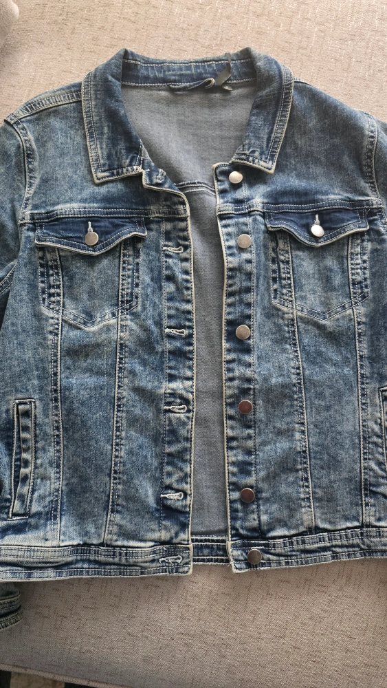 Selling a denim jacket in size medium. It's in great condition and perfect for layering! The classic design and durable material make it a versatile addition to any wardrobe