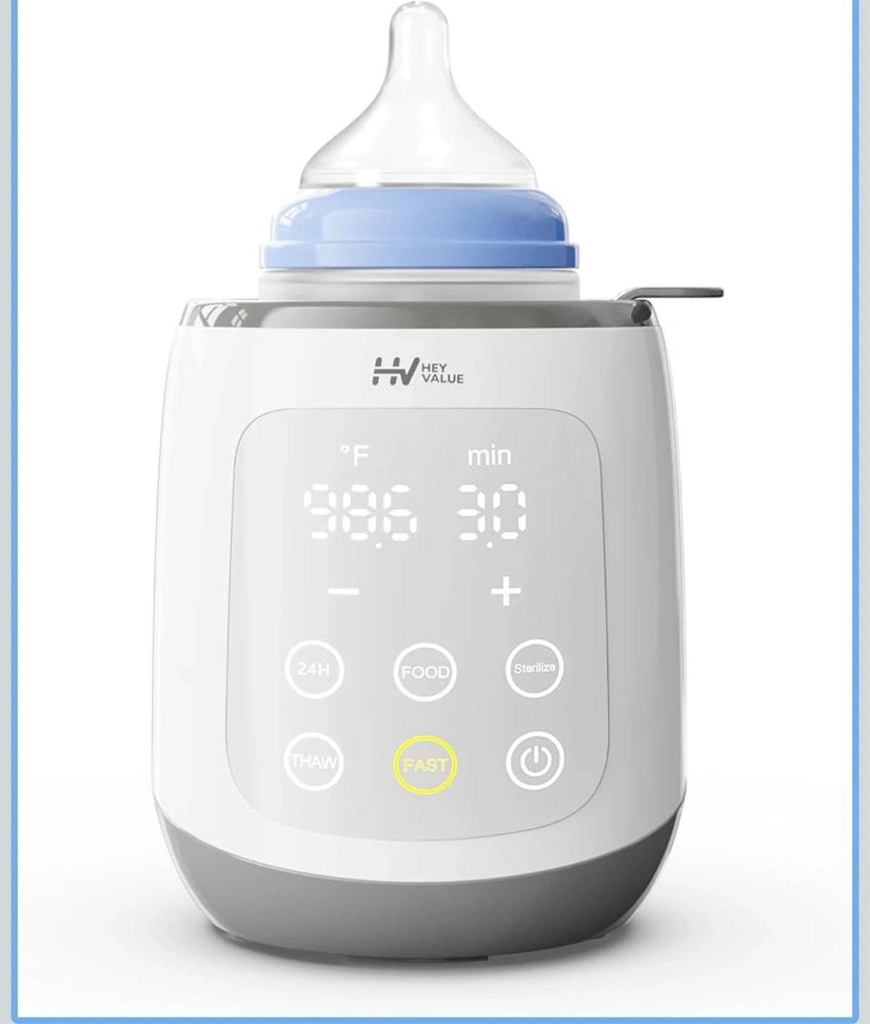 I'm selling a Hey Value Bottle Warmer, model. It is completely brand new. It quickly heats breast milk within 2-6 minutes, offering 30% faster milk warming. It also features steam sterilizing and defrosting for frozen milk. Keeps warm 24/7 and is great for heating baby food. Box included!