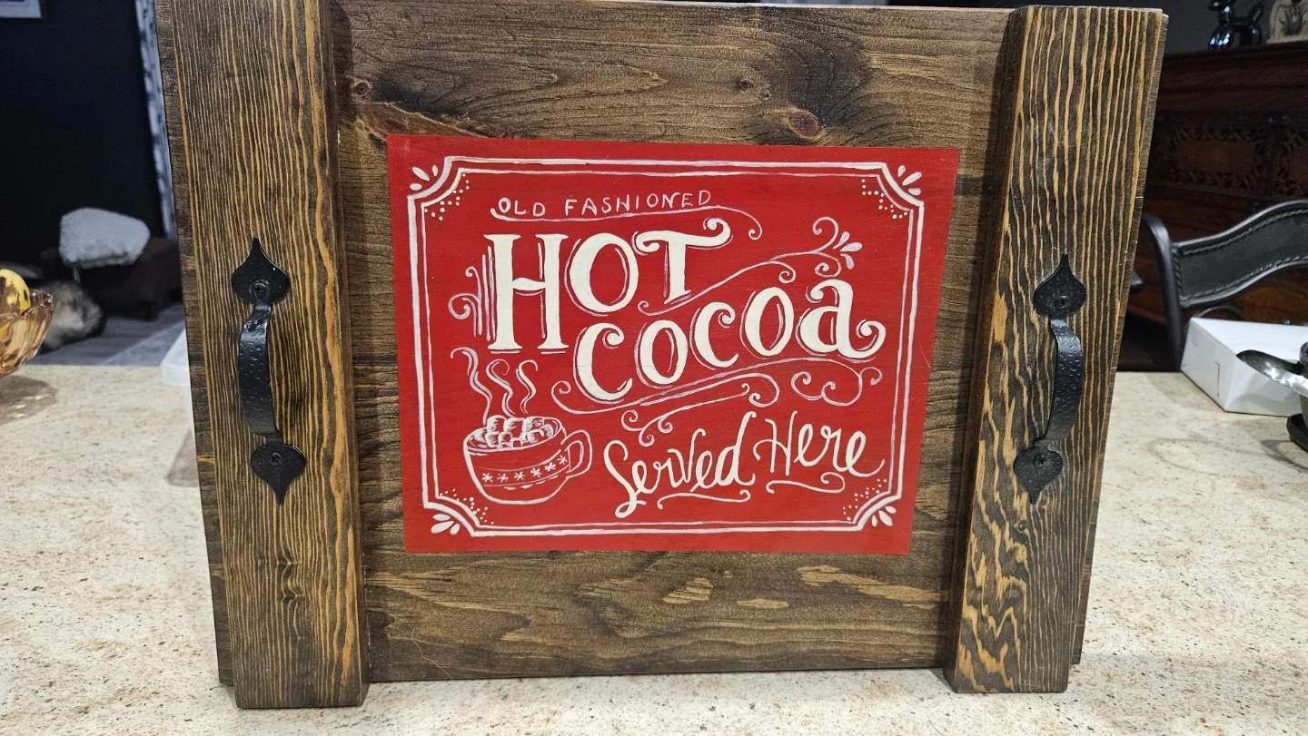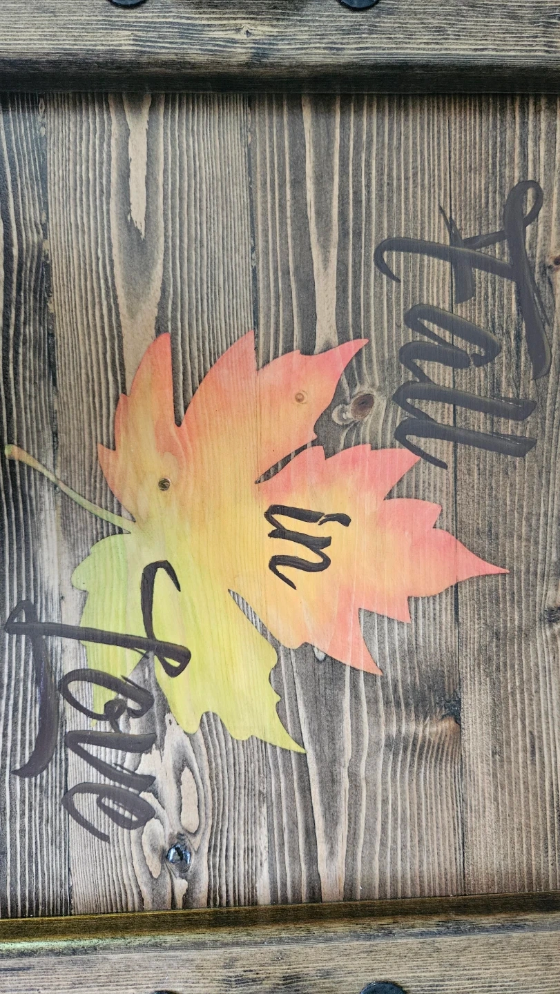 Selling a cute fall themed wooden tray! It has a rustic look with a leaf and acorn design. Perfect for adding a touch of autumn to your home decor.