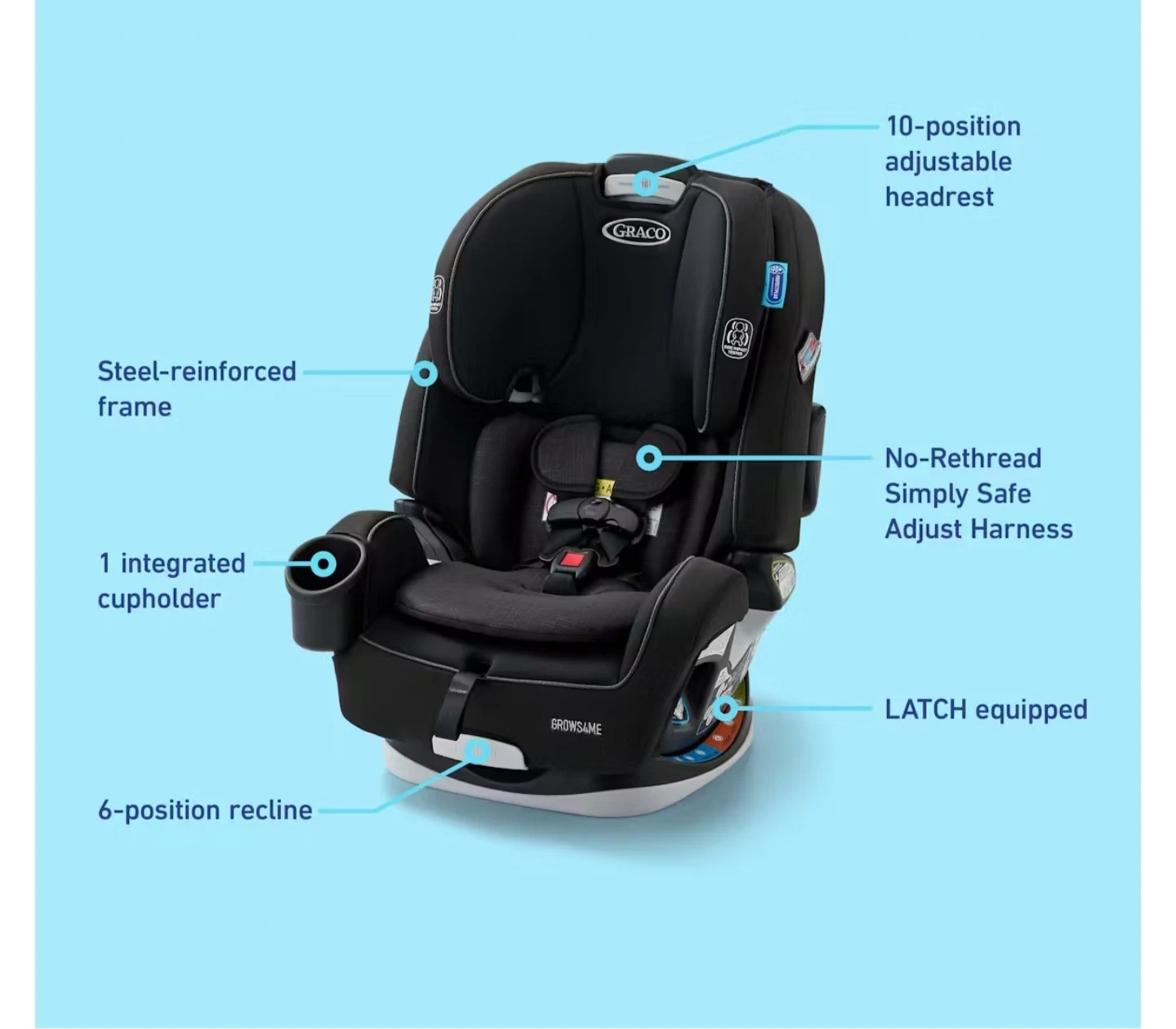 This car seat is designed to grow with your child, offering a 10-position adjustable headrest and a 6-position recline to ensure your little one is always comfy and safe. It also features a steel-reinforced frame and is LATCH equipped for easy installation. Plus, it comes with an integrated cup holder for convenience on the go!