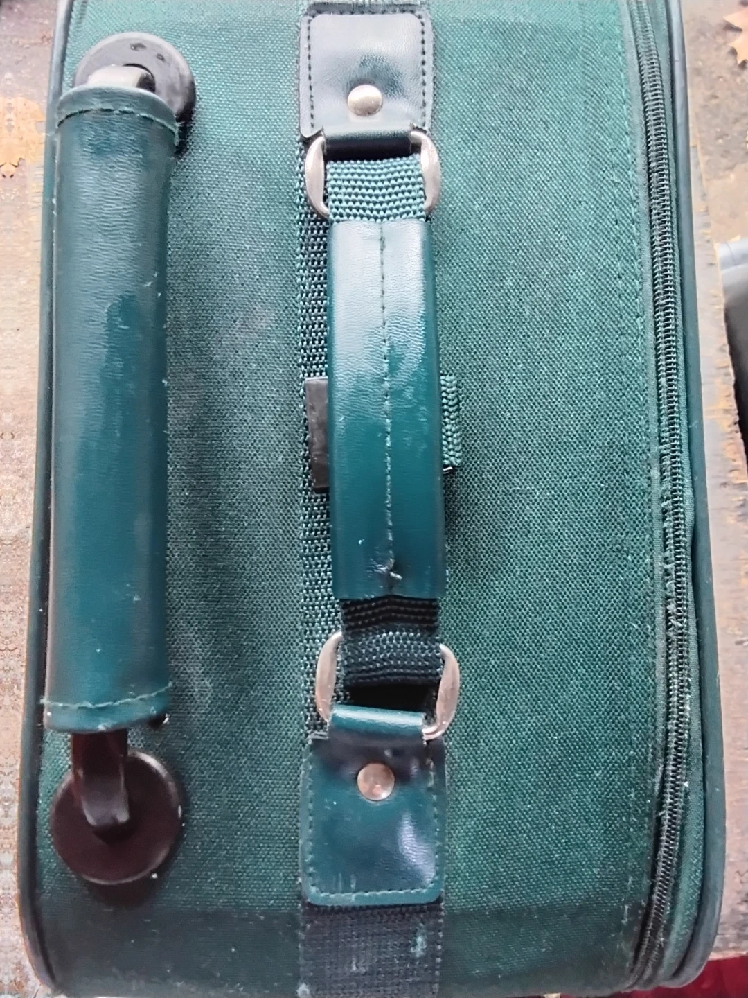 🤌This Stradellina suitcase is a reliable travel companion, ready for your next adventure! It's turqoise/teal/dark green hue is distinctive and appealing, and is fully functional. It's got a retractable handle and smooth-rolling wheels, making it easy to navigate through airports and train stations.