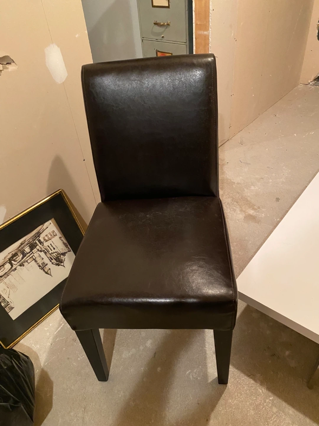 I have six brown leather dining chairs. It's good condition and would look great in any dining room or kitchen