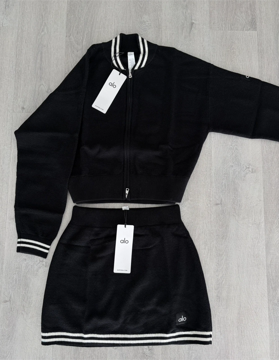 ALO Tennis Club Sweater Knit Full Zip Jacket & Skirt Set