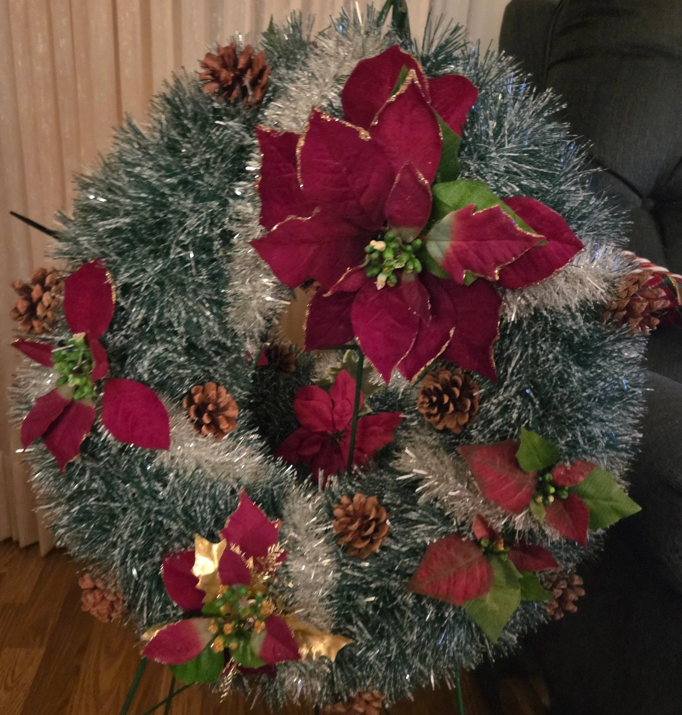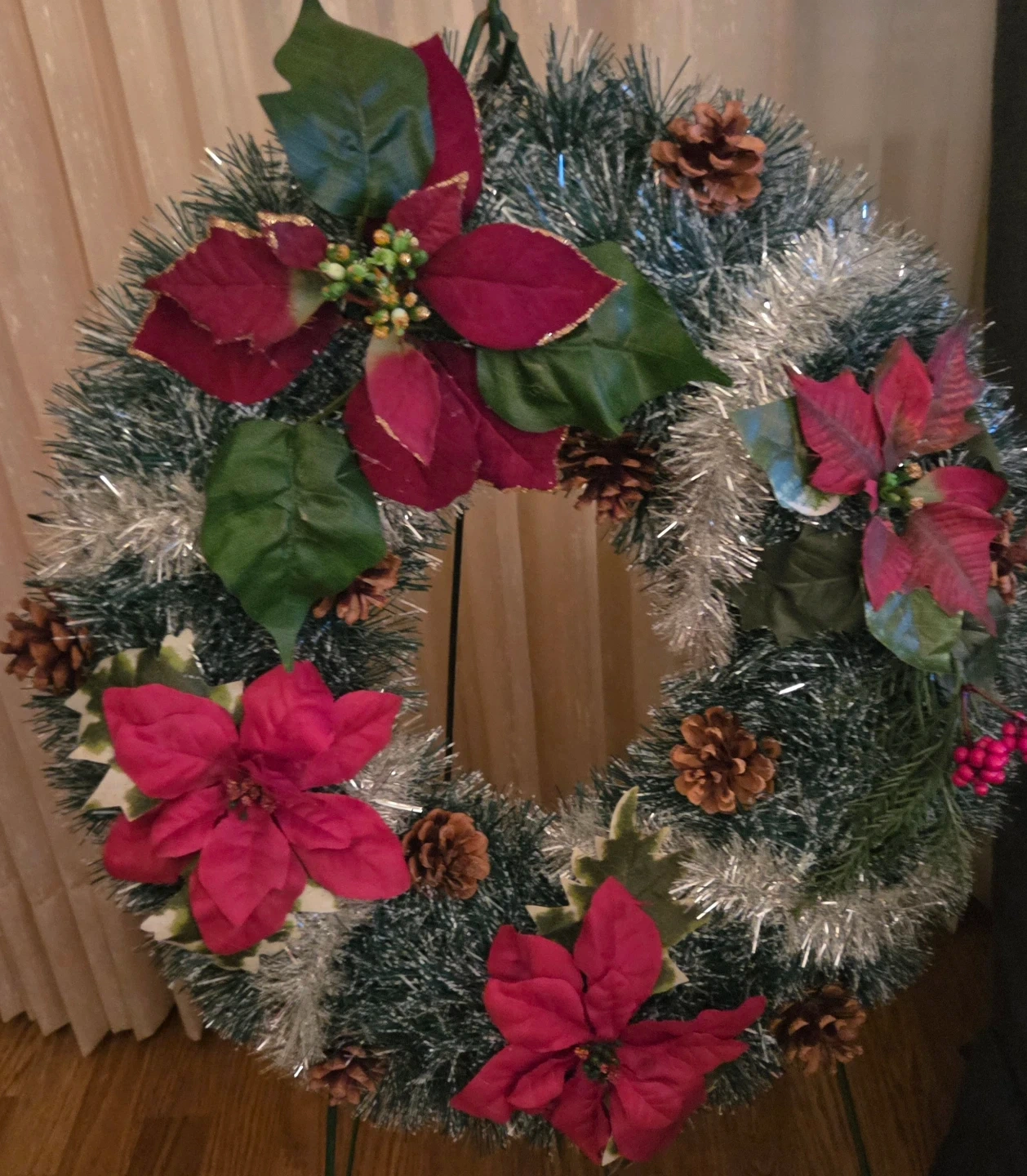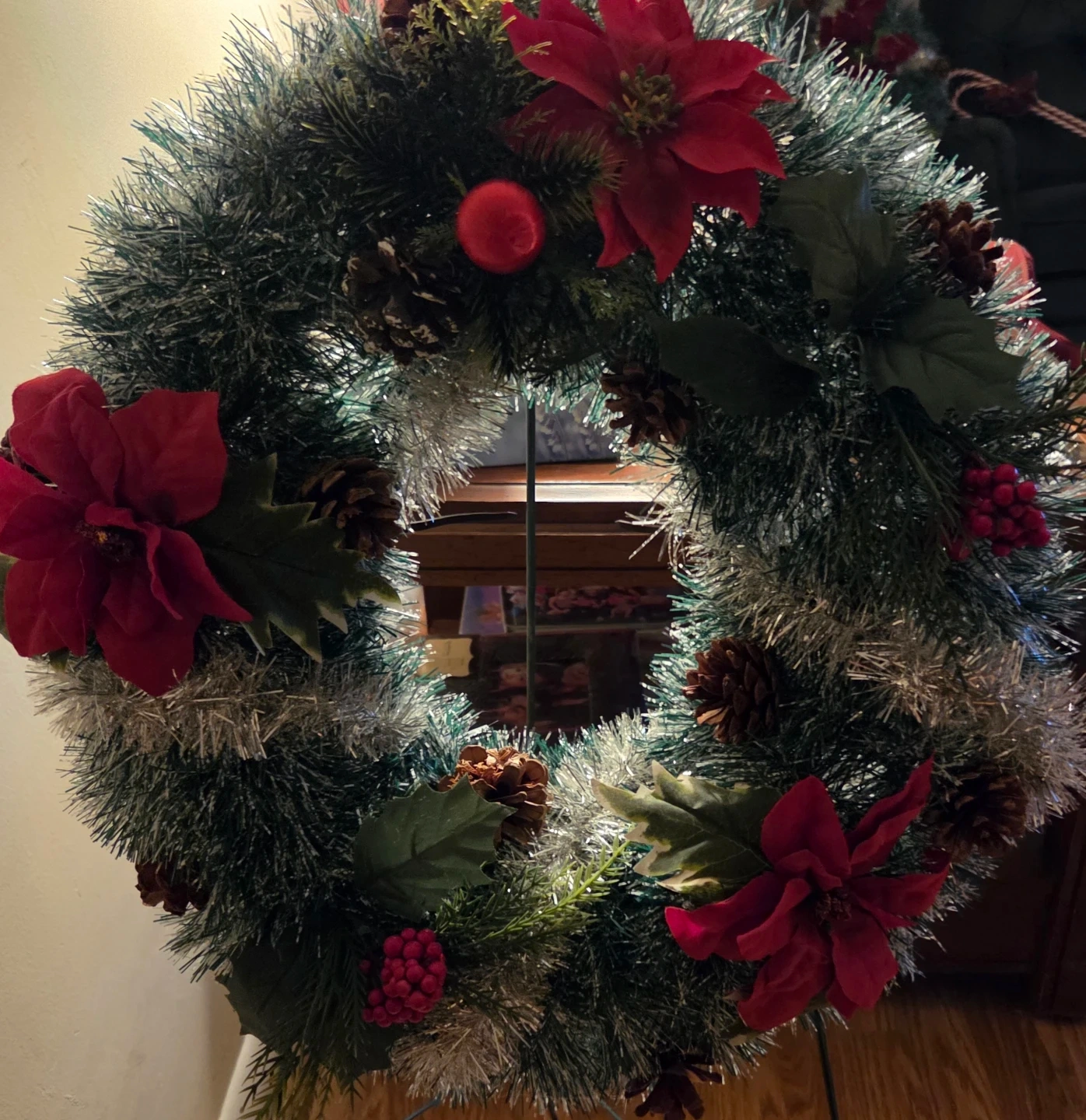 119Festive Christmas wreath decorated with red poinsettias and natural pine cones! Perfect for adding a touch of holiday cheer to your home. 20 Each