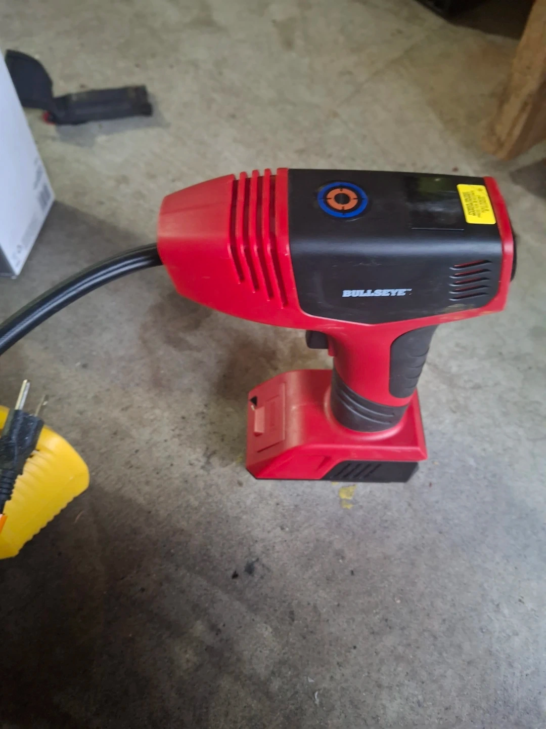 Selling a Bullseye rechargeable inflator. It uses a rechargeable Li-Ion battery pack, model 9475B-BAT. Great for household use