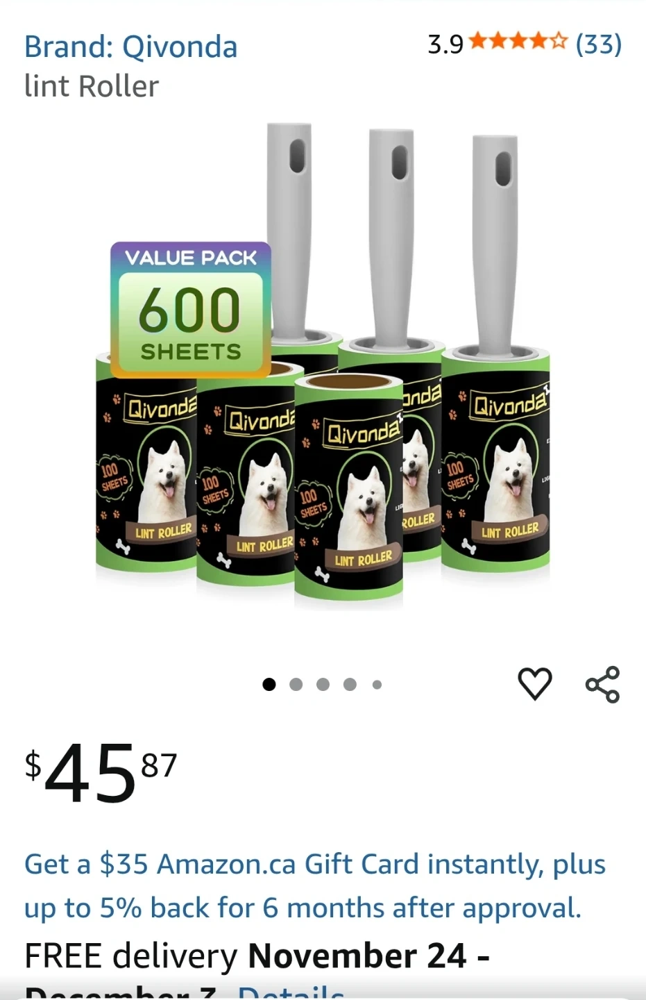 85I'm selling a value pack of Qivonda lint rollers with 600 sheets total! It's a great way to keep your clothes and furniture clean from pet hair and lint Location: Taunton and Townline Check out my other listings