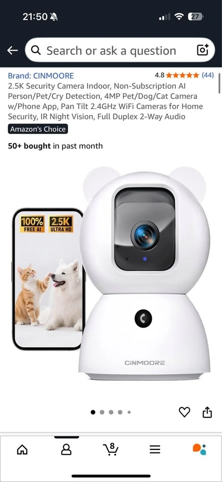 2.5K Security Camera Indoor, Non-Subscription AI Person/Pet/Cry Detection, 4MP Pet/Dog/Cat Camera w/Phone App, Pan Tilt 2.4GHz WiFi Cameras for Home Security, IR Night Vision, Full Duplex 2-Way Audio