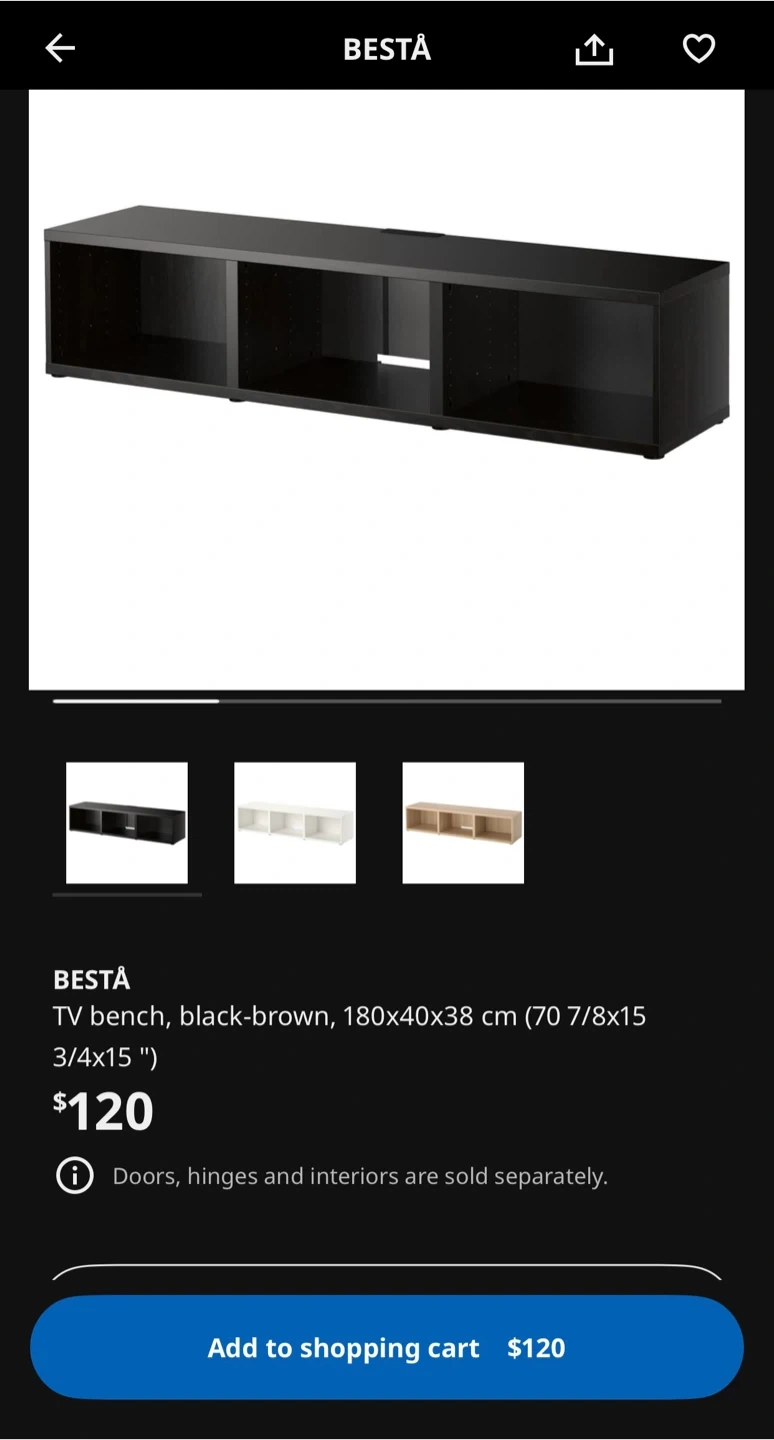 TV bench in black and brown color from IKEA in mint condition. Suitable for TV upto 72 inches. Original price was $120 plus tax.