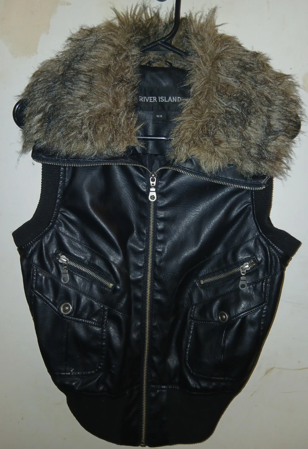 713Like new. Excellent condition. Available for pickup at 2401 Queen Street East. For a quicker response 437-577-2614. Can be shipped/delivered for an additional fee. This River Island black faux leather vest is a stylish addition to any wardrobe, featuring a chic faux fur collar and a medium size fit. This vest has been gently enjoyed, so it's in excellent condition and ready for a new home! It has a unique look and would be great to wear in the fall or spring. Details: - Brand: River Island - Size: Medium - Material: Faux Leather - Colour: Black - Collar: Faux Fur Looking for a stylish vest? Don't miss out! If the ad is up, it's still available; so don't delay!