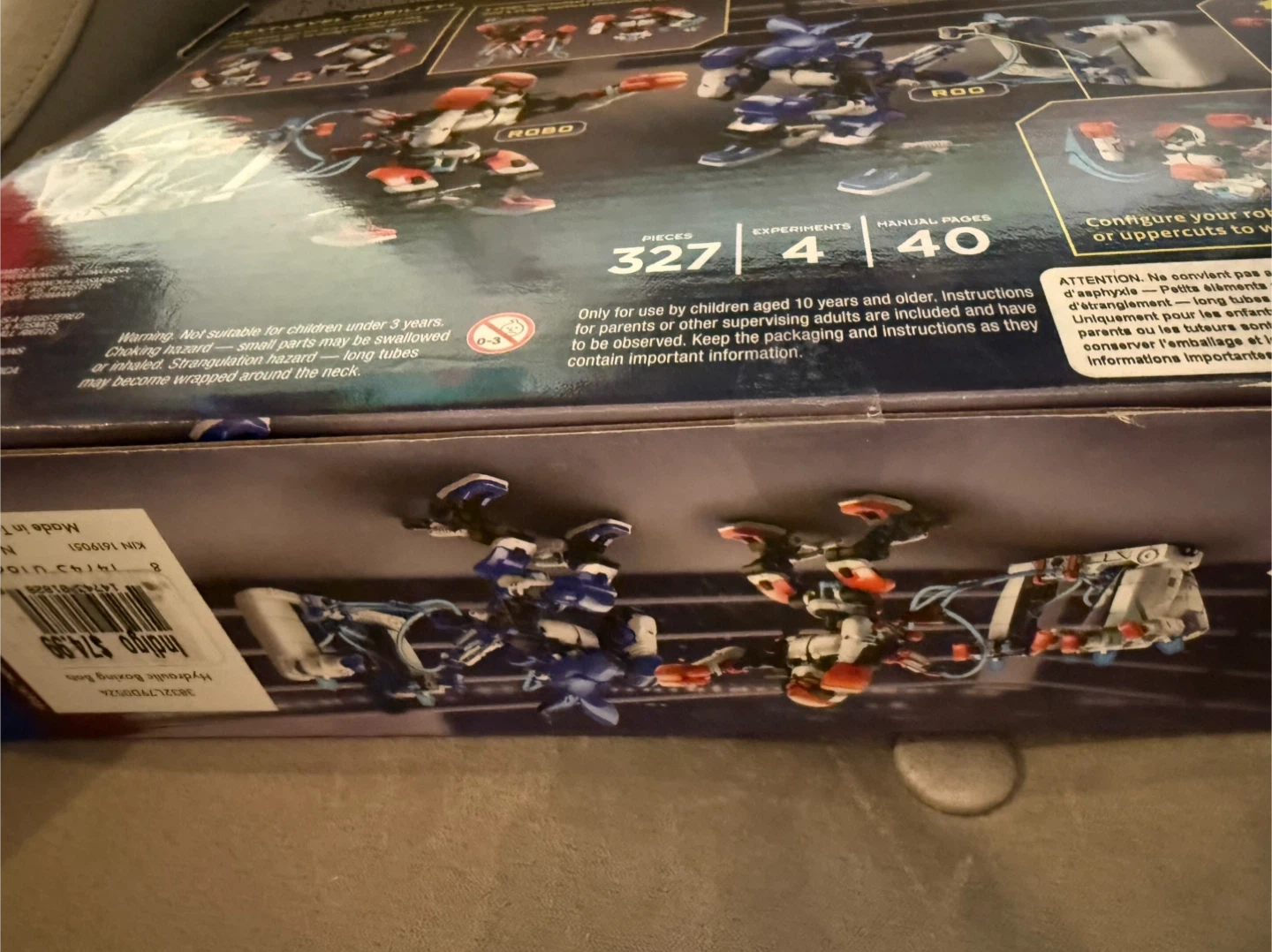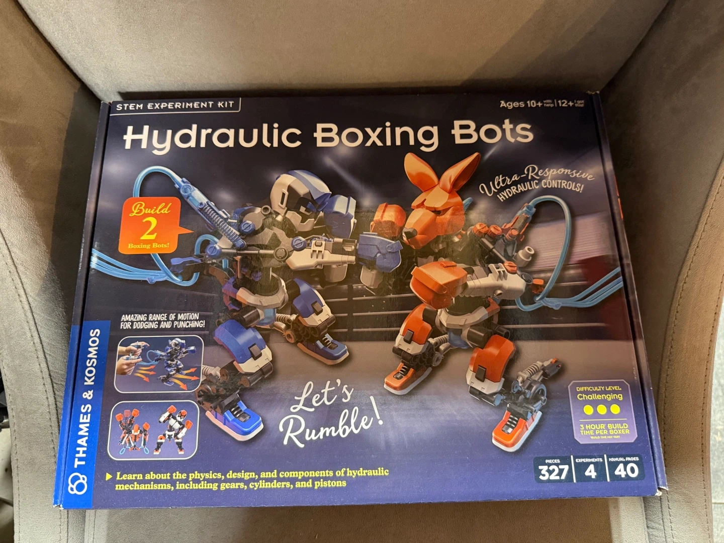 Get ready to rumble with this Brand New Hydraulic Boxing Bots STEM experiment kit! It's a fun and challenging build for ages 10+. Learn about physics, design, and hydraulic mechanisms while building two boxing bots. The kit includes 327 pieces and detailed instructions.