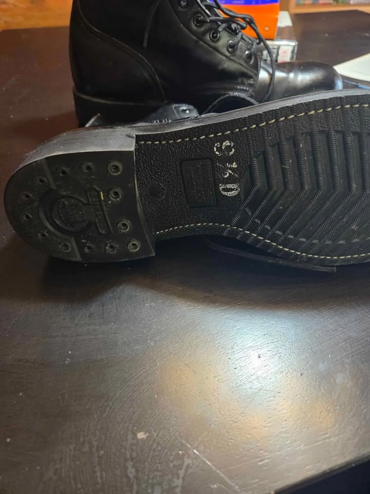 Genuine Canadian Armed Forces DEU Parade Leather Boots in black, mens size 9.5.