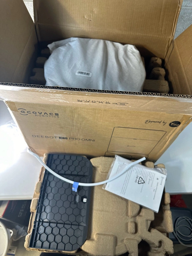 Ecovacs DEEBOT X9 PRO OMNI robot vacuum and mop, featuring a BLAST™ 16,600Pa suction, OZMO ROLLER Instant Self-Washing Mopping, ZeroTangle™ 3.0, Triple Lift System, AI Smart Navigation, and a Hands-Free OMNI Station. This unit is in excellent condition and ready to keep your floors spotless!