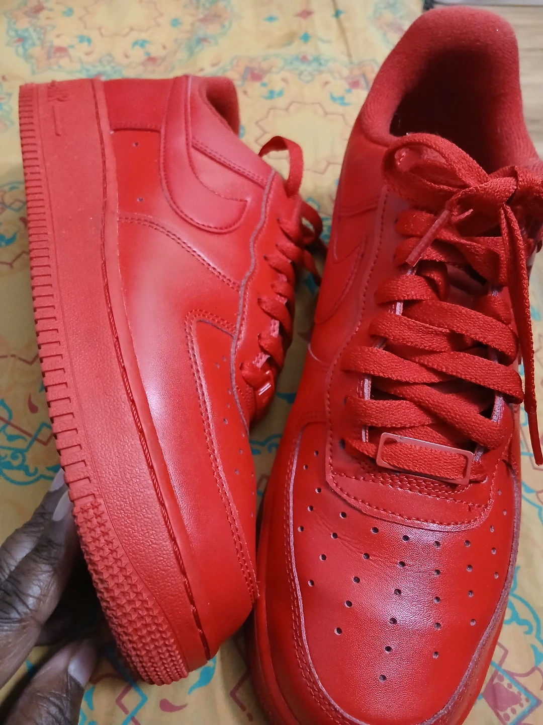 Selling a all red pair of Nike Air Force 1 sneakers in red! They're in great shape and ready for a new home. Classic style and comfortable fit!