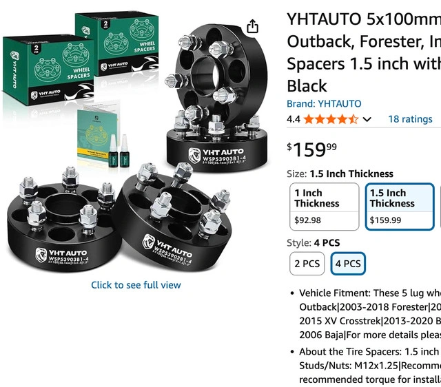 685x100 Wheel Spacers — Fits Subaru, Toyota, Scion & Saab | 1.5” Hub-Centric Set of 4. Condition: Slightly Used. ✅ Compatible Vehicles (5 Lug Models): Subaru: Outback (2005–2014), Forester (2003–2018), Impreza (2002–2021), Crosstrek (2016–2021), Legacy (1990–1991 / 1995–2014), XV Crosstrek (2013–2015), Tribeca (2008–2014), Baja (2005–2006) Toyota / Scion / Saab: BRZ (2013–2020), FR-S (2013–2016), 86 (2017–2020), Saab 9-2X (2005–2006) Specs: Thickness: 1.5 inch (38mm) Bolt Pattern: 5x100 mm Hub Bore: 56.1 mm (hub-centric lip design) Thread Size: M12x1.25 Recommended Torque: 70–80 ft/lbs Performance Upgrade: Give your car a wider, more aggressive stance and improved handling, stability, and grip. Perfect for off-road builds, sports setups, or anyone wanting a tougher look. Installation Tips: Use a high-strength thread locker and always tighten to the recommended torque. Recheck after a short drive to ensure everything stays secure — vibration-free performance guaranteed. Included in Package: 4 × 5x100 wheel spacers 1 × Installation guide These high-quality aluminum alloy spacers are designed for Subaru, Scion, Toyota, and Saab models. Install easily and transform your vehicle’s stance and feel instantly.