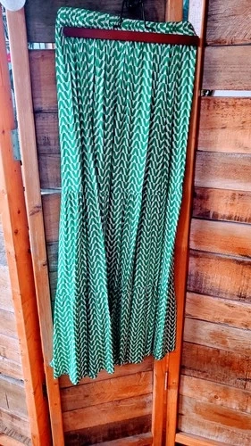 A perfect set from Costa Rica to keep you cool during the summer months or while travelling. Made from breathable fabric, it features a lovely green and white pattern. The skirt sits at your belly button, and the cropped tank can be worn to either cover your stomach or show it off. It's a great way to showcase your style!