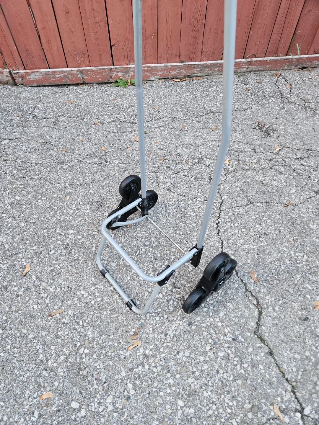 38Selling a handy folding shopping cart! It's perfect for carrying groceries or other items with ease. The cart folds up for easy storage when not in use
