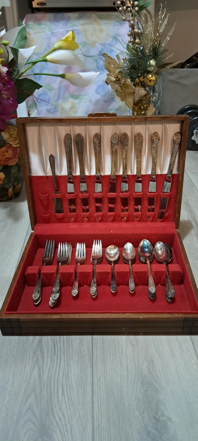 Selling a vintage WM. Rogers MFG. CO. XS Triple Plate cutlery set. This set includes teaspoons, dessert spoons, dessert forks, salad forks, H.H. dinner knives, sugar shell, and butter knives. Please note that some of the utensils are missing, but for the most part almost all of them are included.