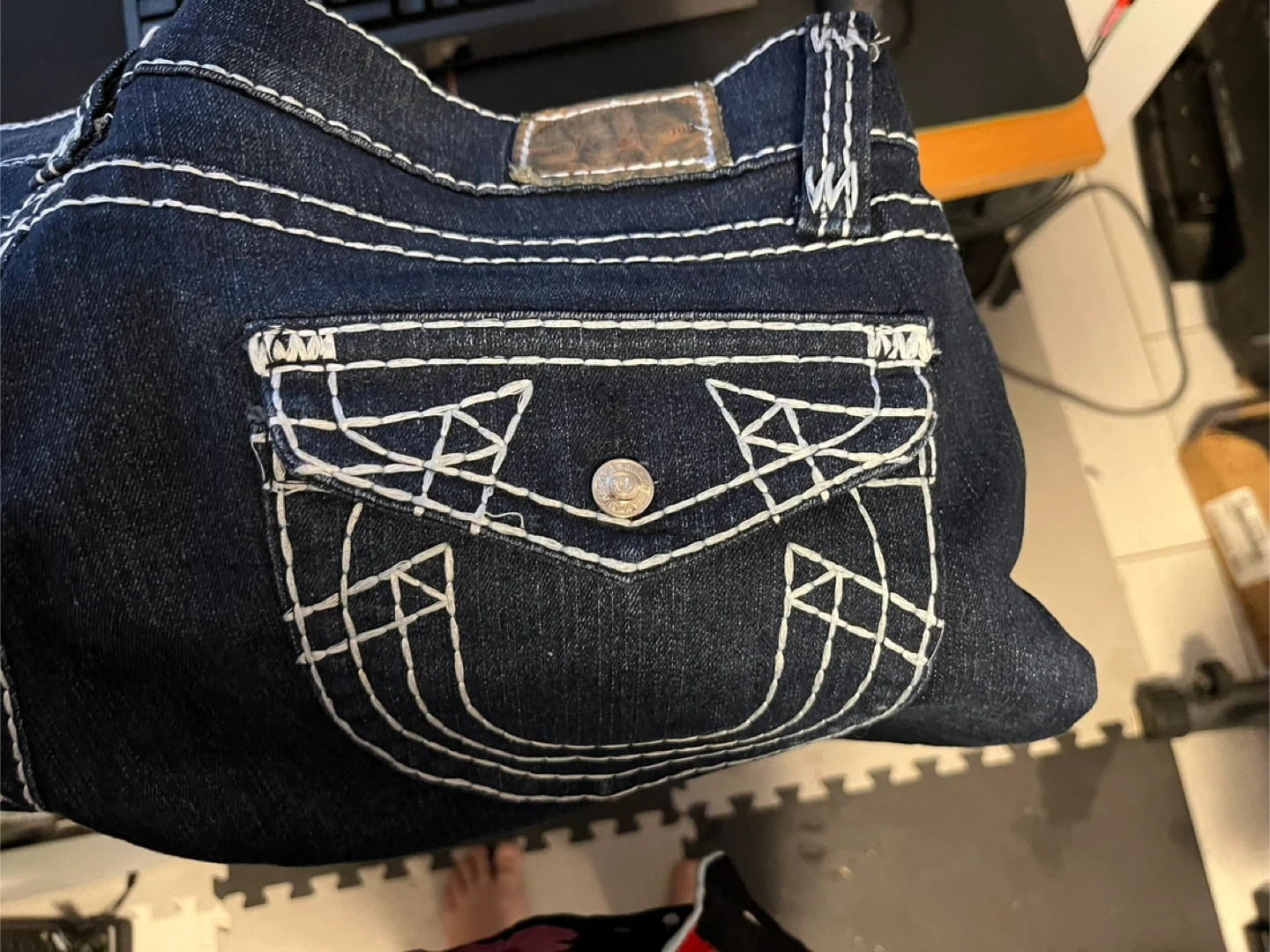 Selling a pair of True Religion jeans in size 33! They're in great condition and ready for a new home. The classic True Religion style with detailed stitching makes them a standout piece for your wardrobe