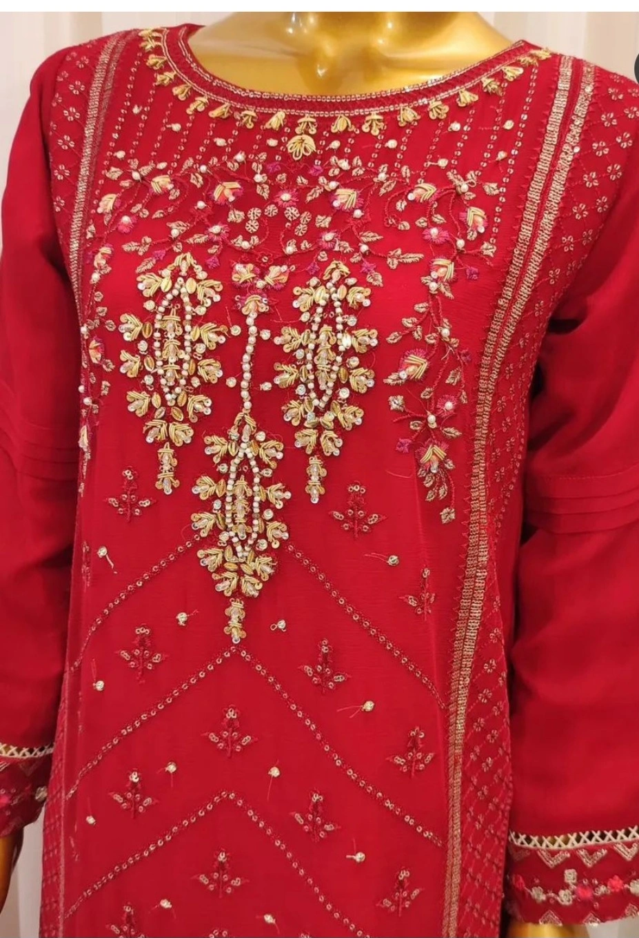 Beautifully embroidered salwar kameez available. The intricate detailing and vibrant colours make this a stunning outfit for any special occasion. Comes with matching dupatta and pants.
