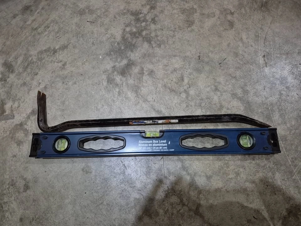 80Tackle tough demolition and prying jobs with this heavy-duty demo prybar/crowbar set! This essential tool is a must-have for construction, renovation, demolition, and woodworking projects where you need serious leverage and pulling power. Built to handle extreme force without bending, this prybar is engineered for the toughest jobs. You can apply maximum leverage with confidence knowing the tool won't fail or deform when you need it most. Approximately 23 inches long (see photo with bar up against 24 inch level for scale), this prybar provides excellent leverage for prying apart materials, removing trim, lifting floorboards, separating joined pieces, and general demolition work. The nail puller end makes quick work of removing stubborn nails, even those driven deep into wood or hard materials. Built from durable metal construction, this tool is designed to withstand the heavy forces and impacts that come with demolition and construction work. Whether you're renovating your home, doing carpentry work, or tackling a demolition project, this prybar delivers the strength and reliability you need. **Specifications:** - Type: Heavy-duty demo prybar/crowbar set and nail puller - Material: Metal (won't bend under pressure) - Length: Approximately 23 inches - Features: Leverage for prying, nail pulling end, extreme durability - Condition: Good working order - Perfect for: Demolition, renovation, construction, carpentry, removing nails, prying boards **Availability & Payment:** If you see this post, it's available — don't hesitate to reach out! Cash only, please. No e-transfers. Moving out of the country and selling everything I own — check out my other listings for furniture, electronics, sporting gear, kitchenware, collectibles, and plenty more!