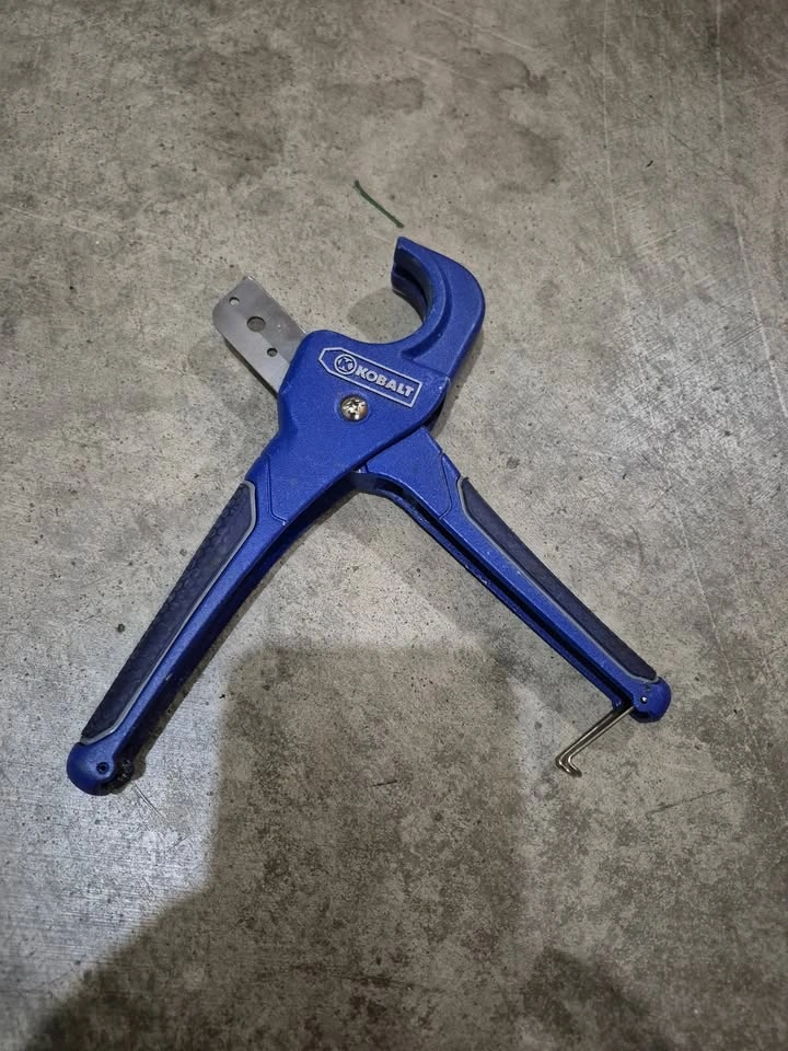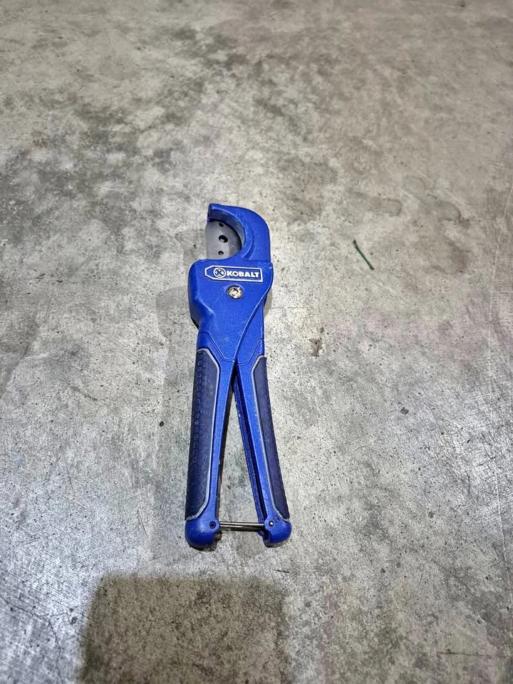 91Make clean, precise cuts in poly pipes with this professional-grade Kobalt poly pipe cutter! Essential for plumbing, irrigation, and home improvement projects, this specialized tool delivers clean, square cuts in polyethylene and PVC pipes without the mess and effort of sawing. The ratcheting mechanism provides smooth, controlled cutting action that requires minimal hand strength — simply squeeze the handles repeatedly and the ratchet does the work, making it easy to cut through pipes cleanly every time. This design is far superior to saws or other cutting methods that can leave ragged edges or require extensive cleanup. Kobalt tools are known for their durability and reliable performance, and this pipe cutter is built to handle both professional and DIY use. Whether you're installing sprinkler systems, repairing plumbing, or working on any project involving poly pipes, this tool makes the job faster and easier. Specifications: - Brand: Kobalt - Type: Poly pipe cutter - Color: Blue - Mechanism: Ratcheting action for easy cutting - Condition: Good working order - Perfect for: Plumbing repairs, irrigation systems, PVC/poly pipe projects, sprinkler installation Availability & Payment: If you see this post, it's available — don't hesitate to reach out! Cash only, please. No e-transfers. More to Browse: Moving out of the country and selling everything I own — check out my other listings for furniture, electronics, sporting gear, kitchenware, collectibles, and plenty more!