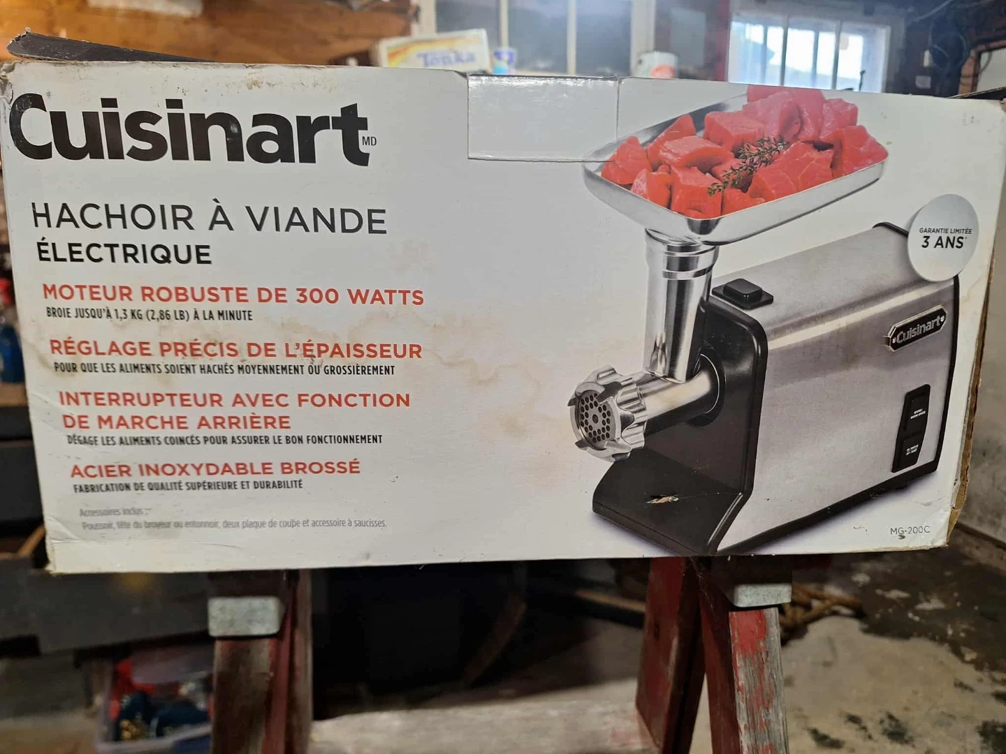 Selling a Cuisinart electric meat grinder. It has a robust 300-watt motor and a stainless steel finish. Comes with accessories in the original box!